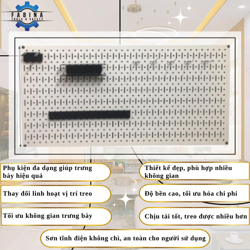 Xem đầy đủ các loại Vách lưới - Kệ trưng bày - Phụ kiện treo Pegboard khác tại đây (link)