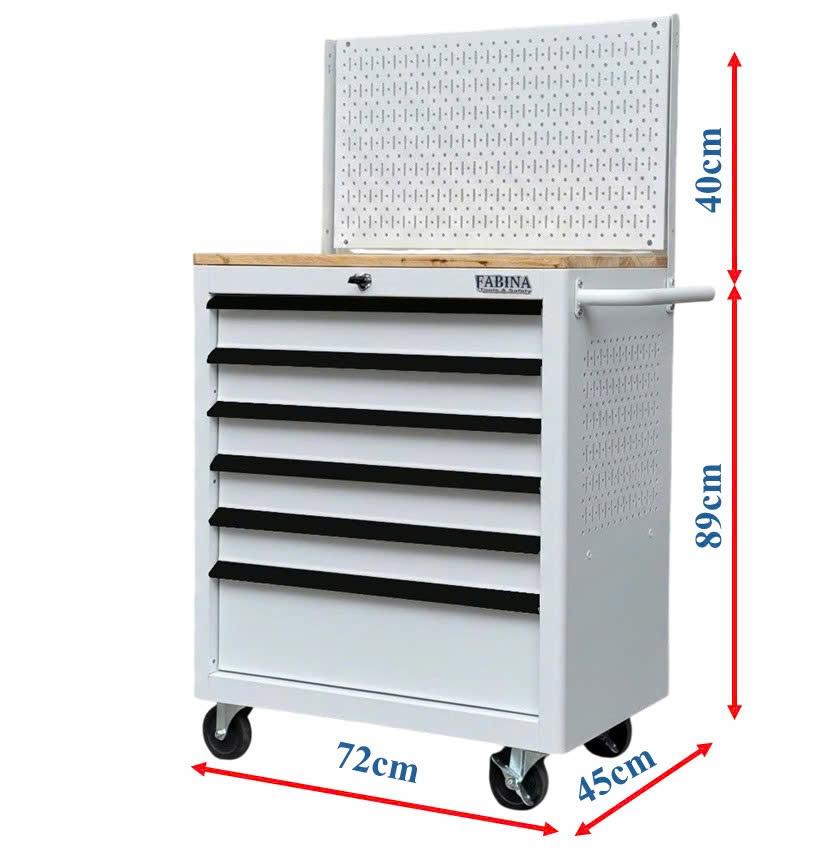 Fabina Matt White tool cabinet including pegboard - 6 drawers