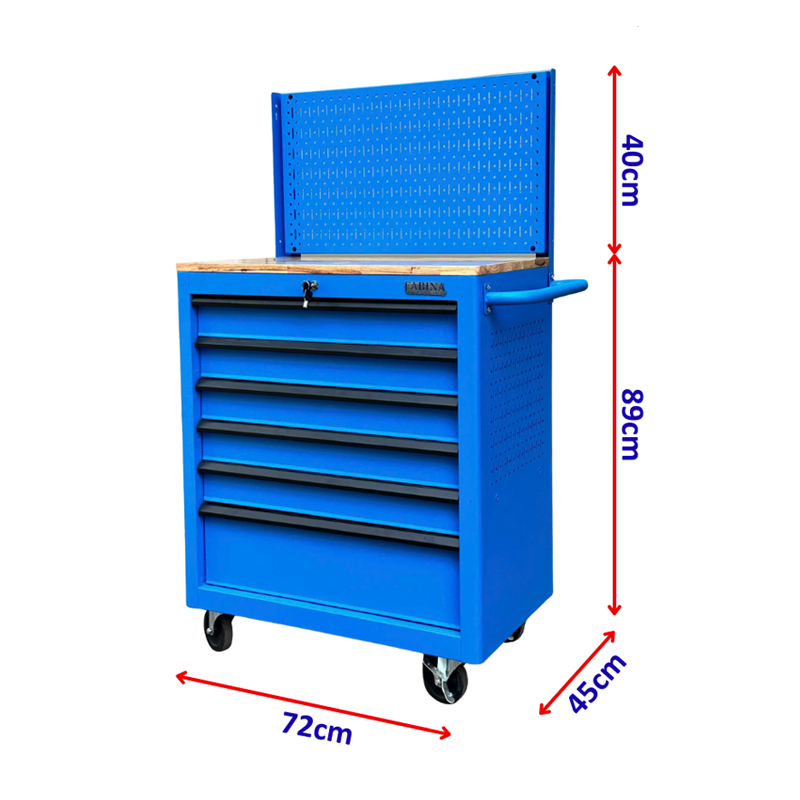 Fabina Blue Tool Cabinet including pegboard – 6 Drawers