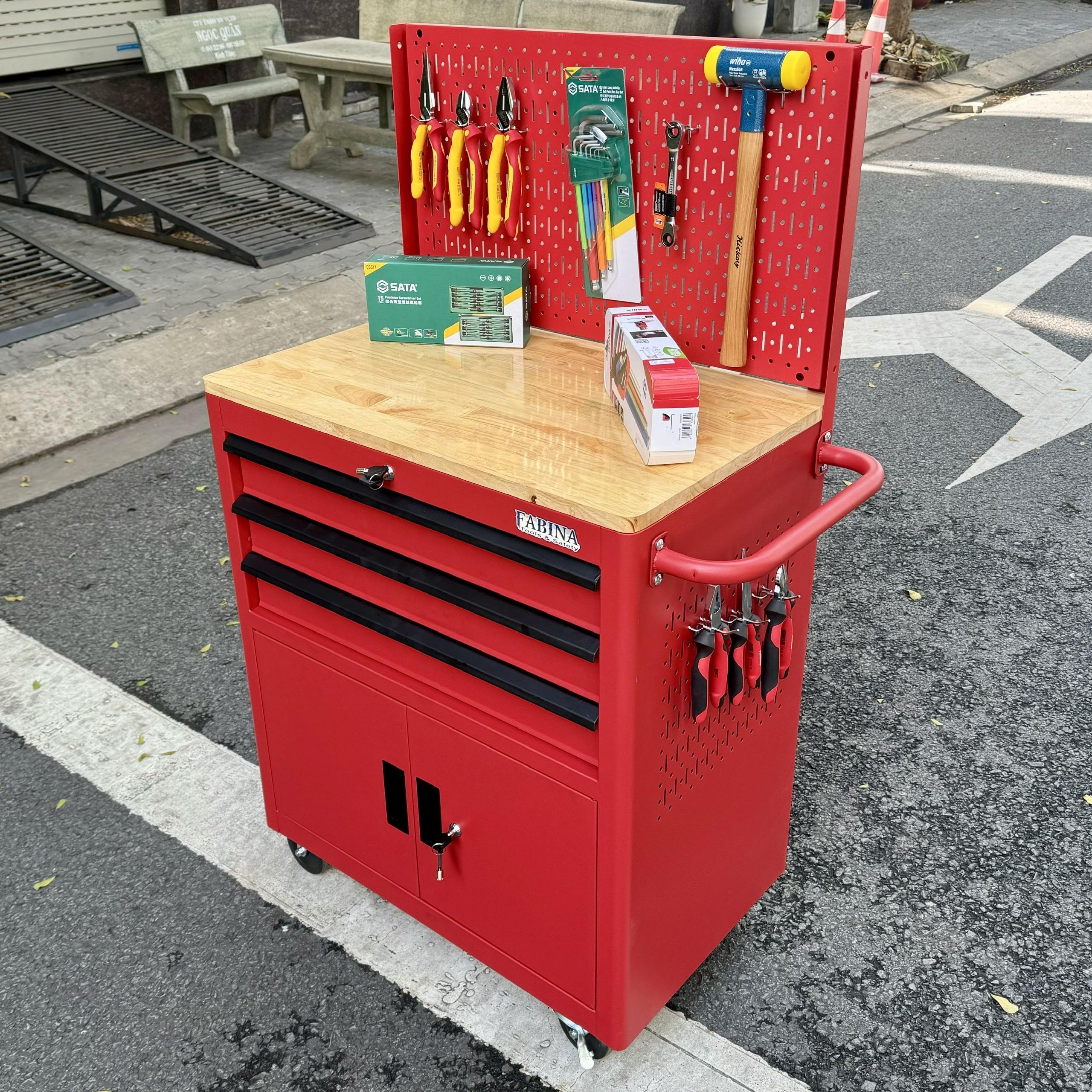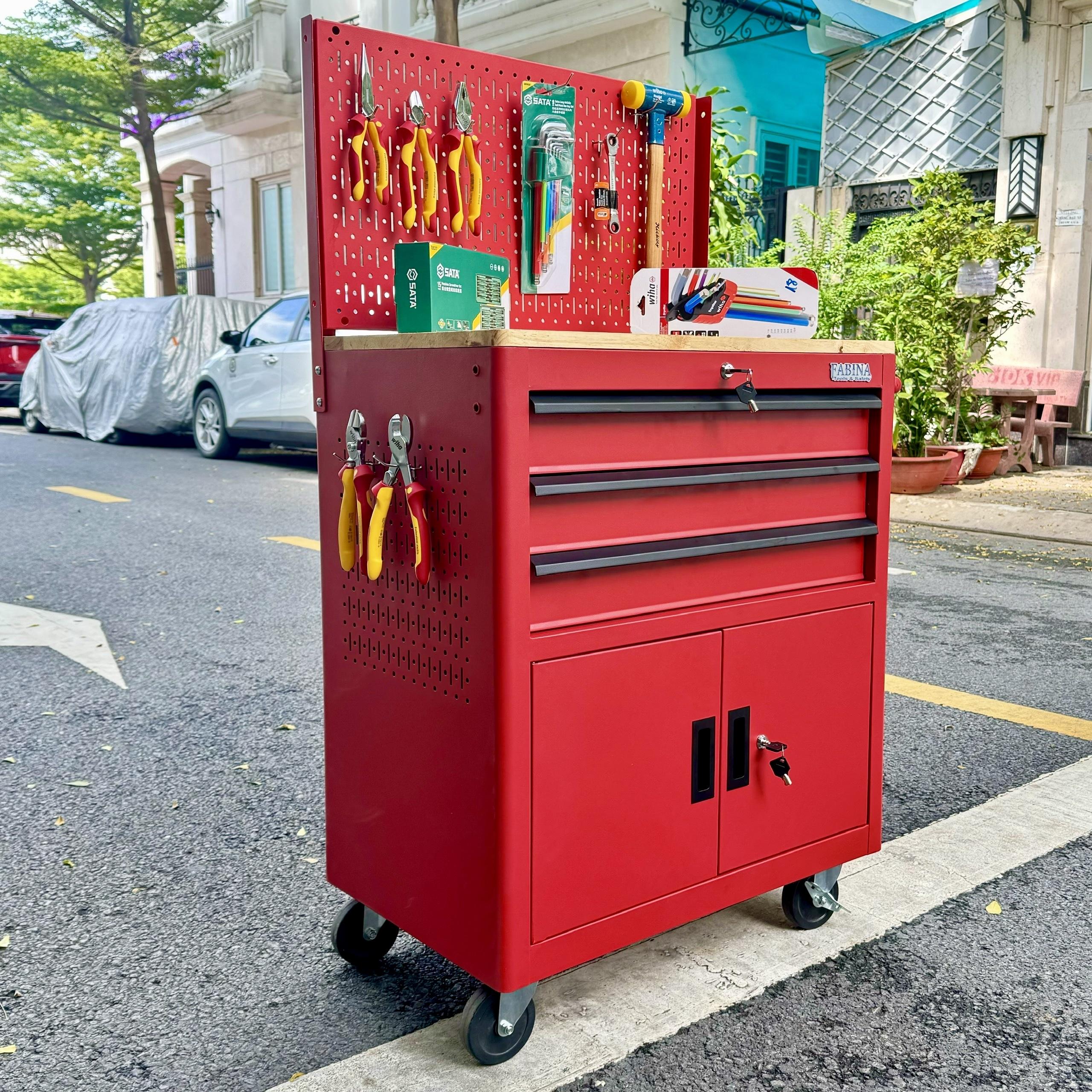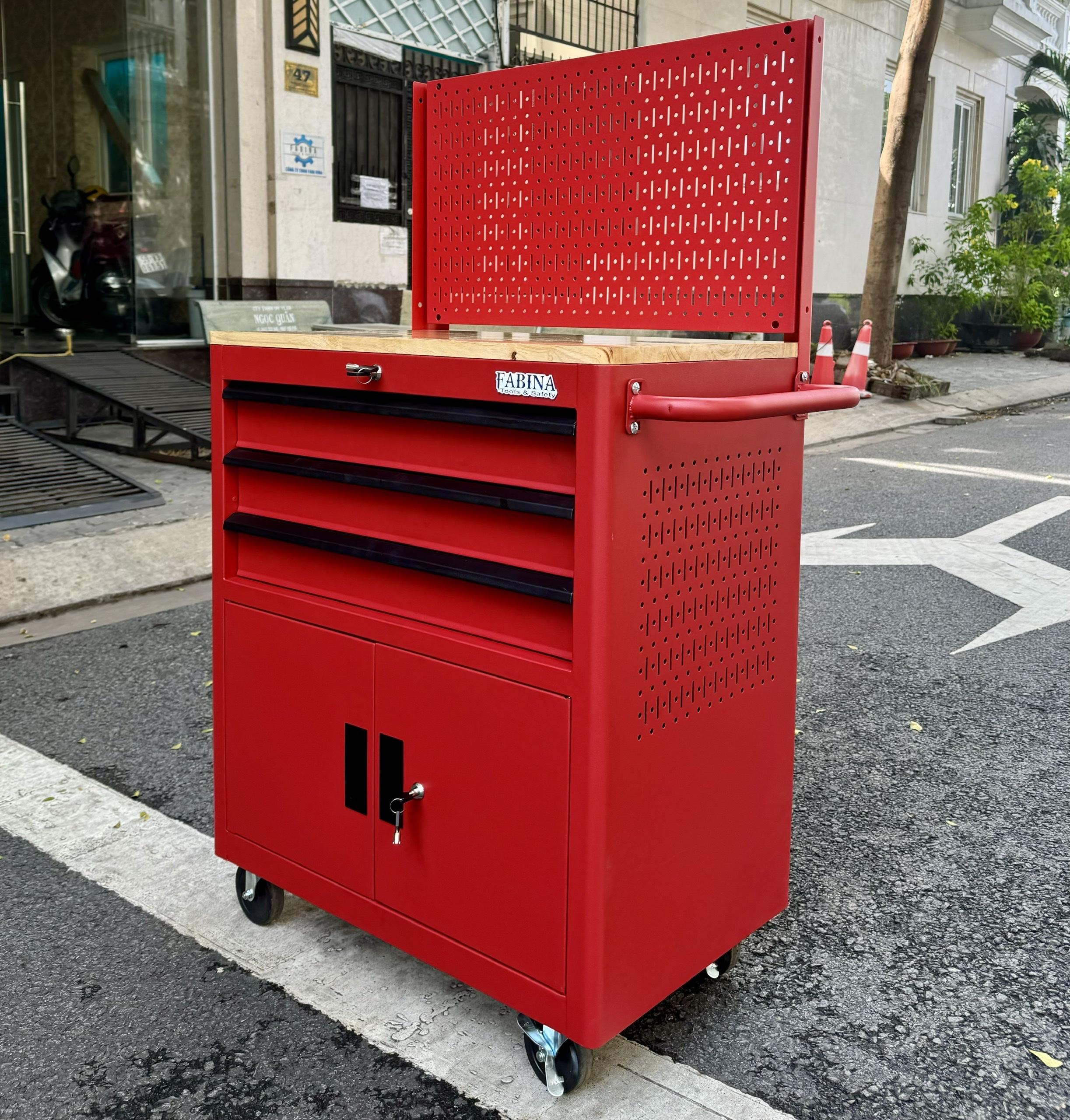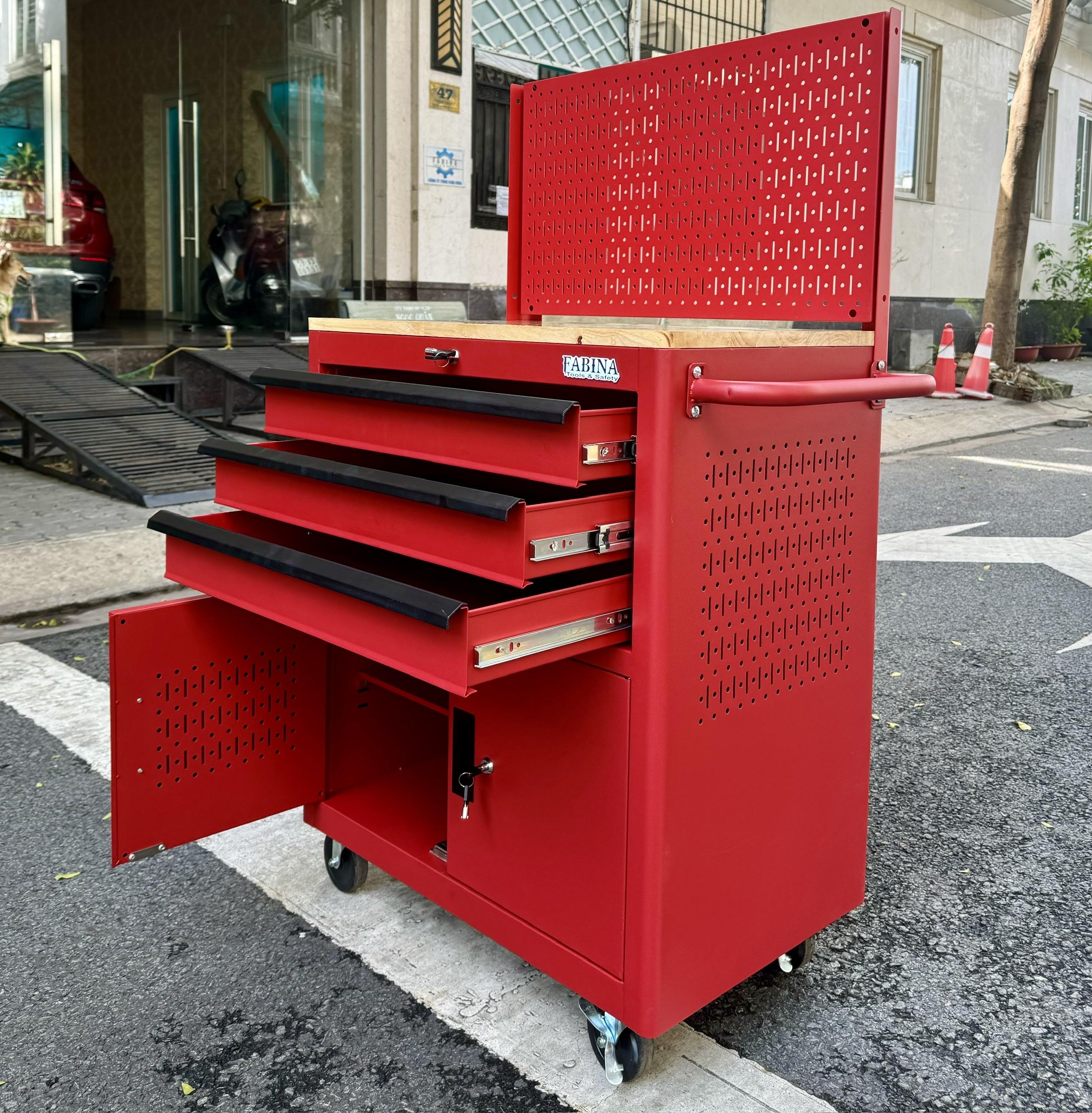 Tủ dụng cụ 3 hộc kéo 2 ngăn chứa màu đỏ kèm vách lưới Fabina