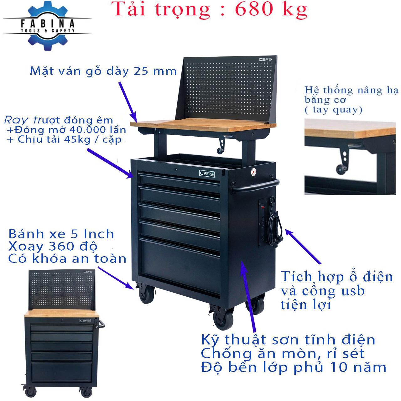 Tủ dụng cụ đồ nghề CSPS 76 cm – 05 hộc kéo kèm vách lưới tay nắm đen
