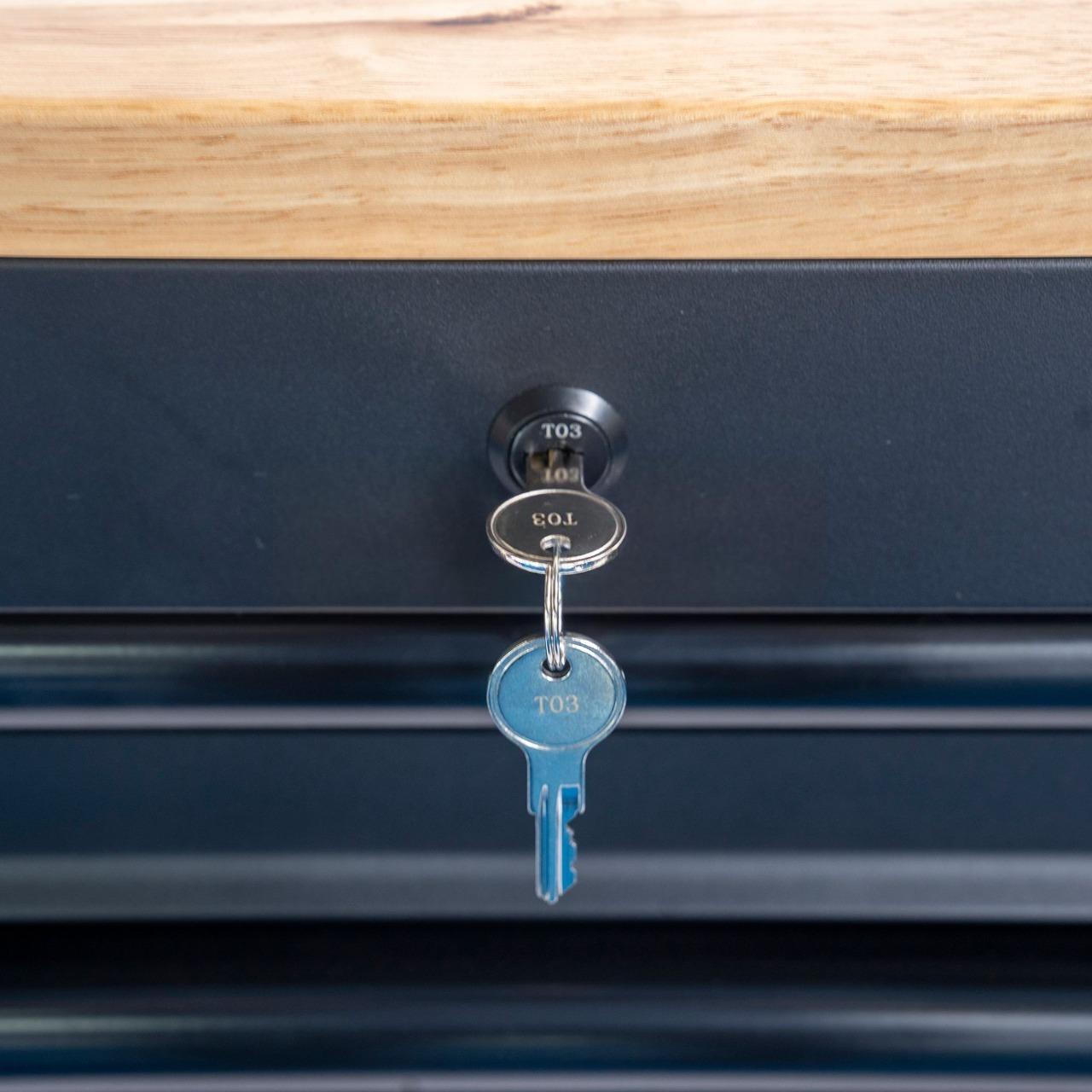 - Tiết kiệm không gian làm việc thông qua việc kết hợp bàn nguội vào tủ dụng cụ. / Save working space by combining working table with tool cabinet.