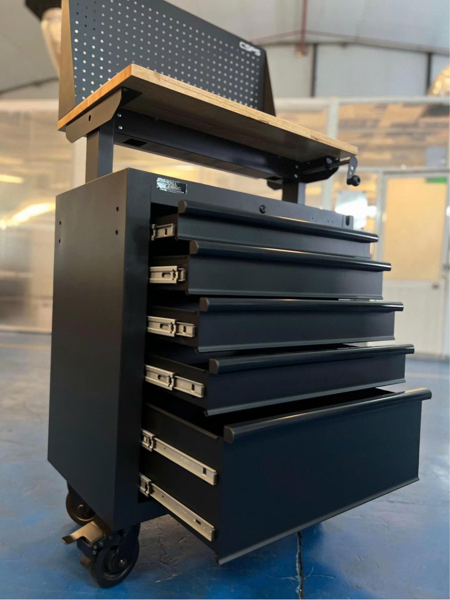 Tủ dụng cụ CSPS 76 cm + kết hợp vách lưới – 05 hộc kéo, giúp bạn sắp xếp khu vực làm việc hiệu quả, là một trang bị cần thiết cho nhà máy, garage, cửa hàng hay văn phòng làm việc / CSPS tool cabinet 76 cm – 05 drawers which is suitable for workshop, factory, garage, shop, office… will help you organize working area efficiently.