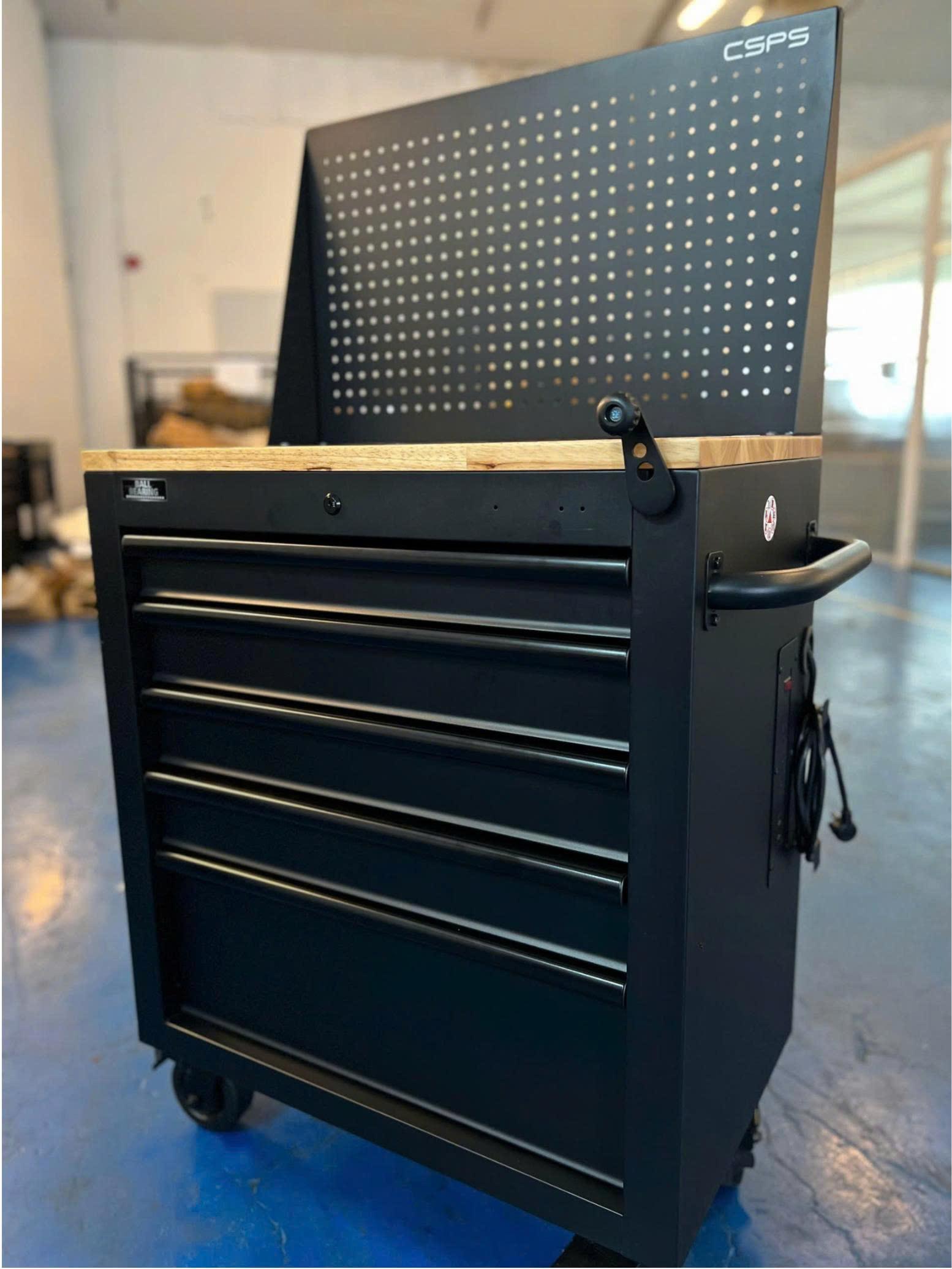 Tủ dụng cụ CSPS 76 cm + kết hợp vách lưới – 05 hộc kéo, giúp bạn sắp xếp khu vực làm việc hiệu quả, là một trang bị cần thiết cho nhà máy, garage, cửa hàng hay văn phòng làm việc / CSPS tool cabinet 76 cm – 05 drawers which is suitable for workshop, factory, garage, shop, office… will help you organize working area efficiently.
