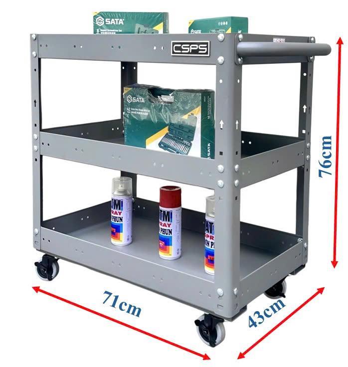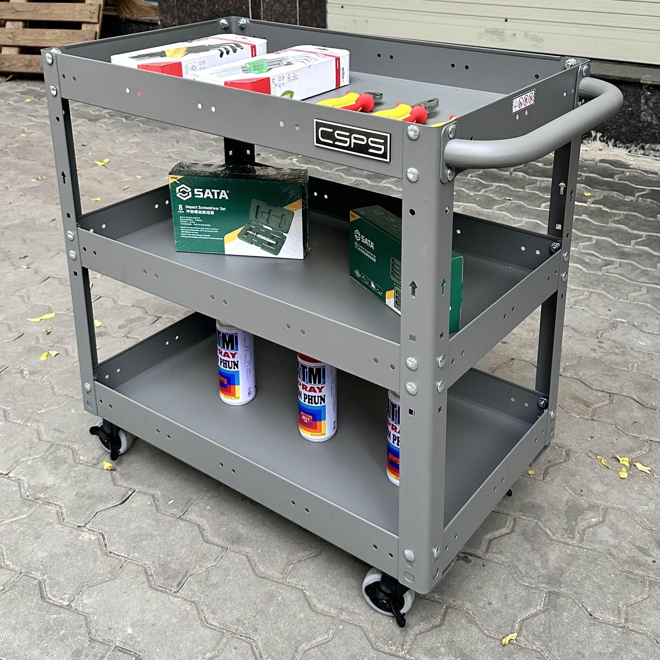 Xe đẩy 3 ngăn 71cm, Tiêu chuẩn Mỹ, sơn tĩnh điện, giúp bạn chứa dụng cụ và di chuyển dễ dàng trong quá trình làm việc, là một trang bị cần thiết cho nhà máy, garage, cửa hàng hay văn phòng làm việc