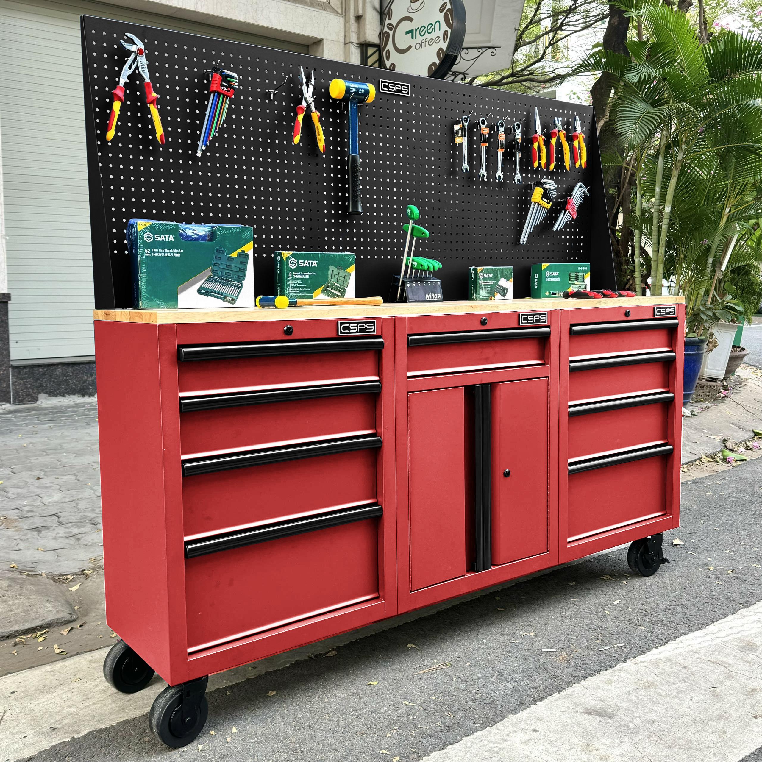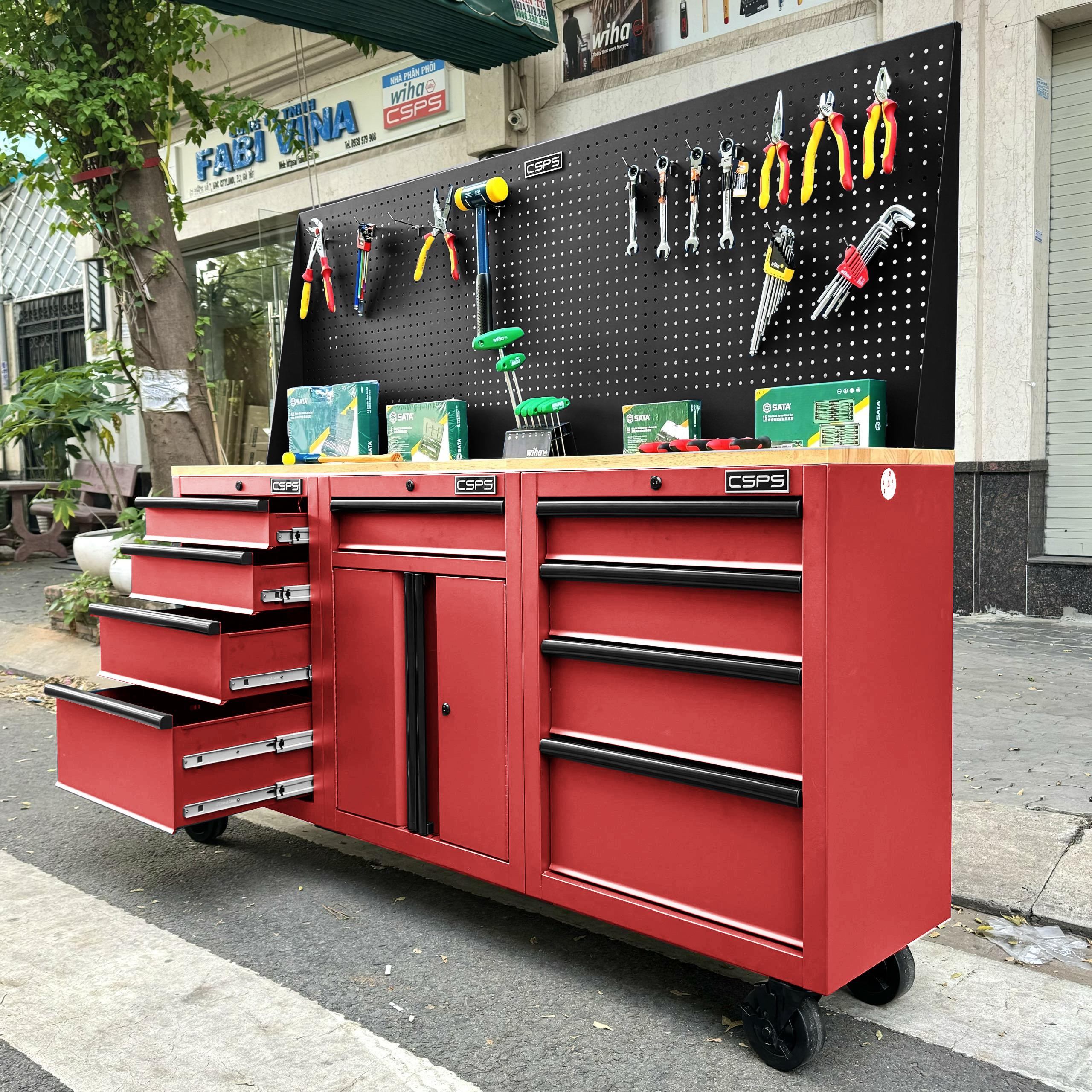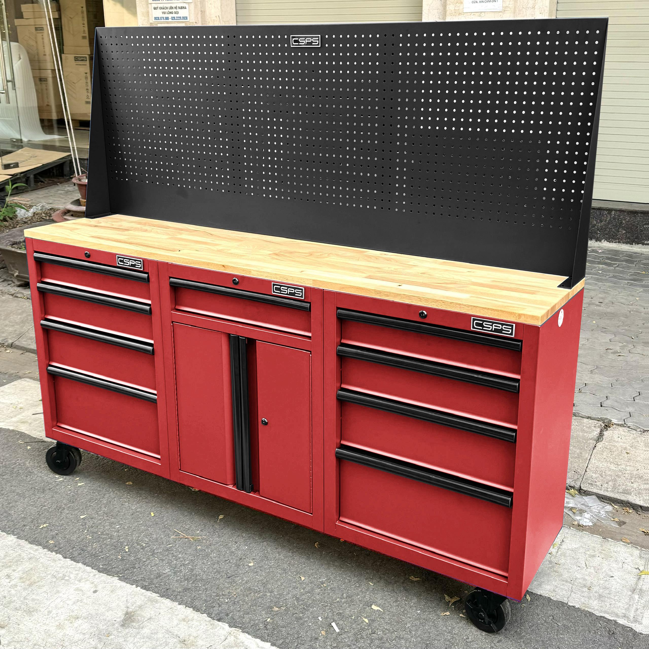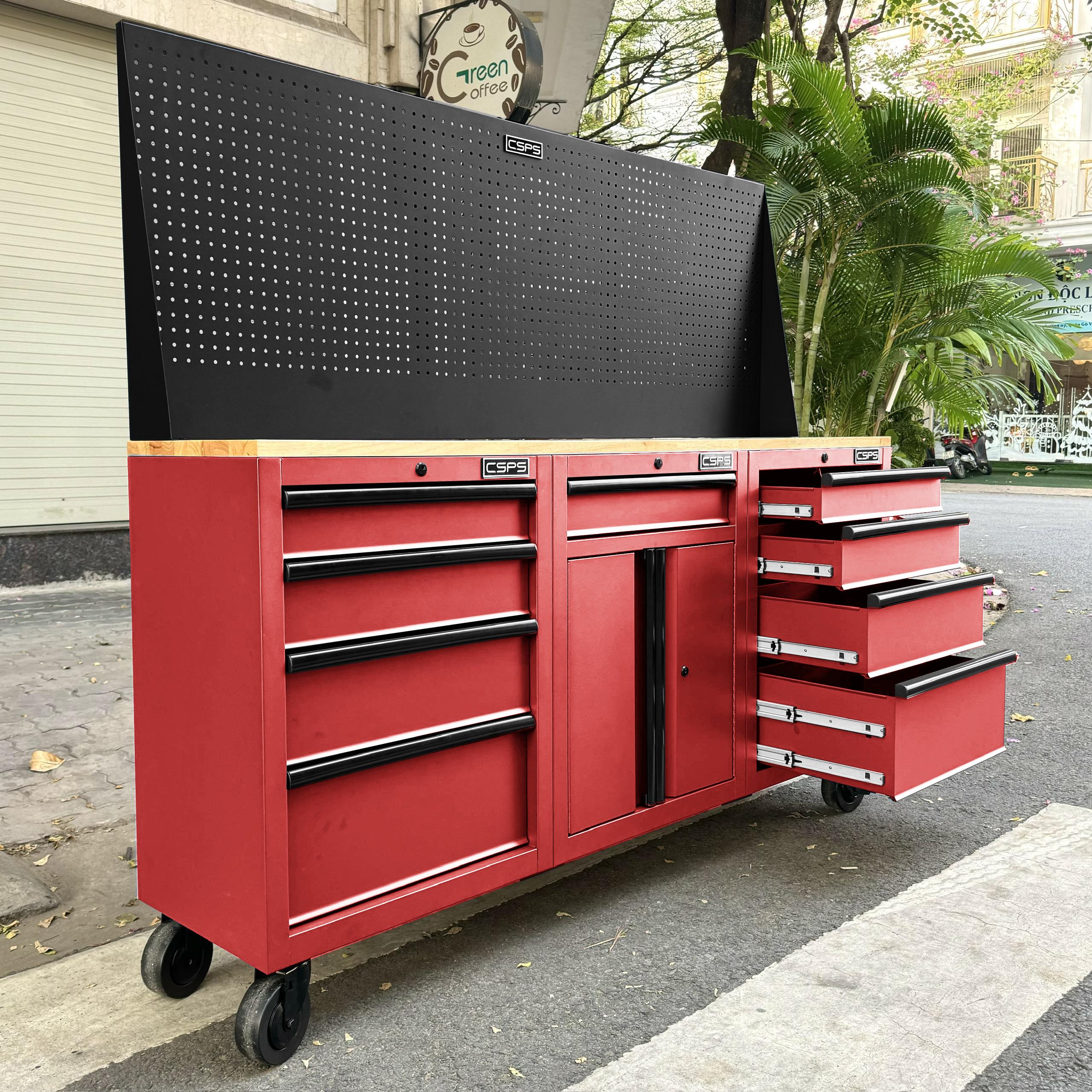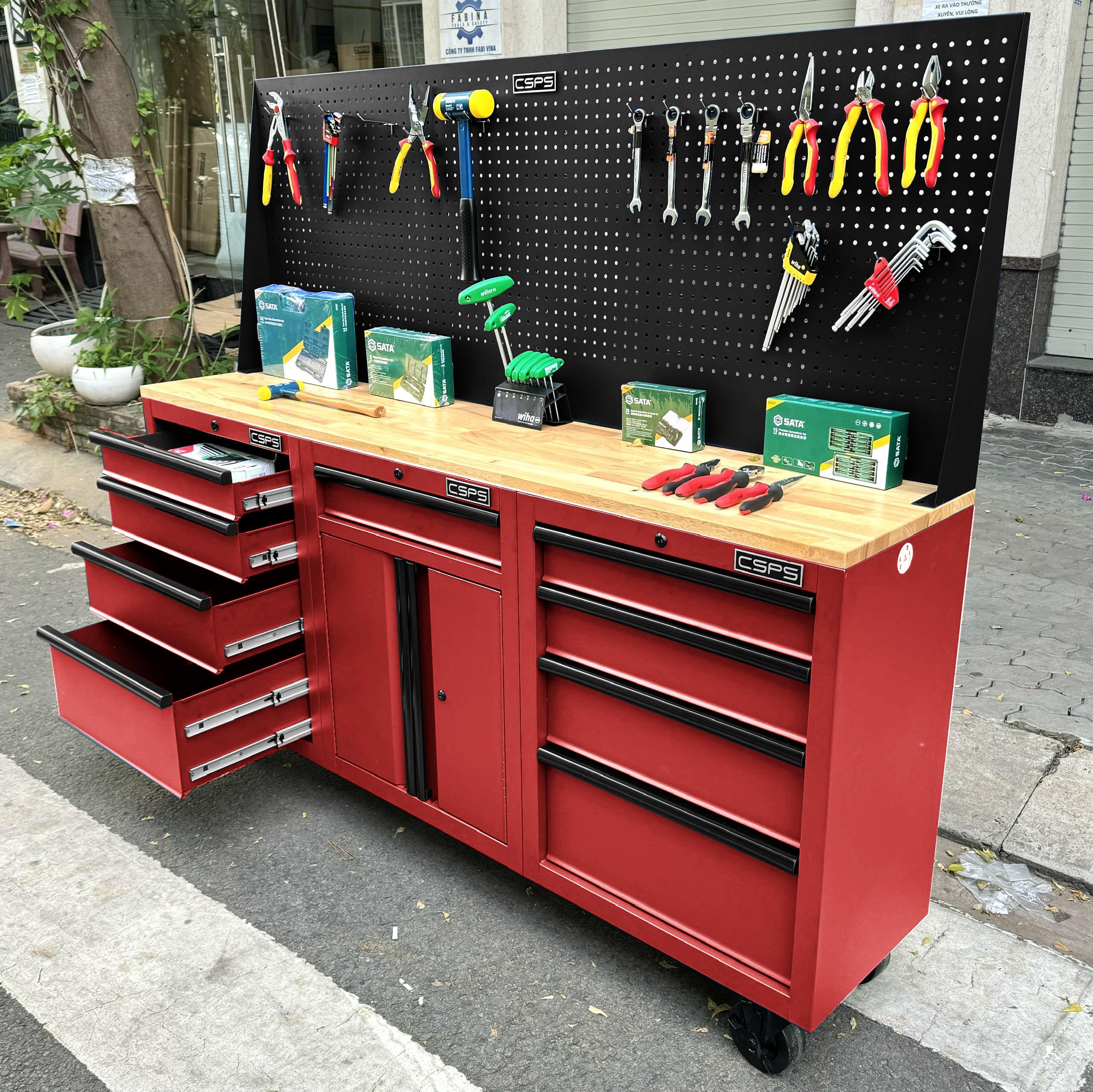 Bộ 3 Tủ dụng cụ CSPS 183cm màu đỏ mặt ván gỗ kèm vách lưới - 09 hộc kéo