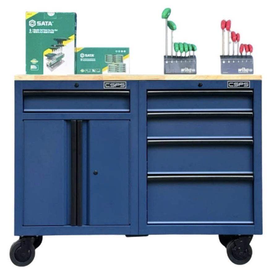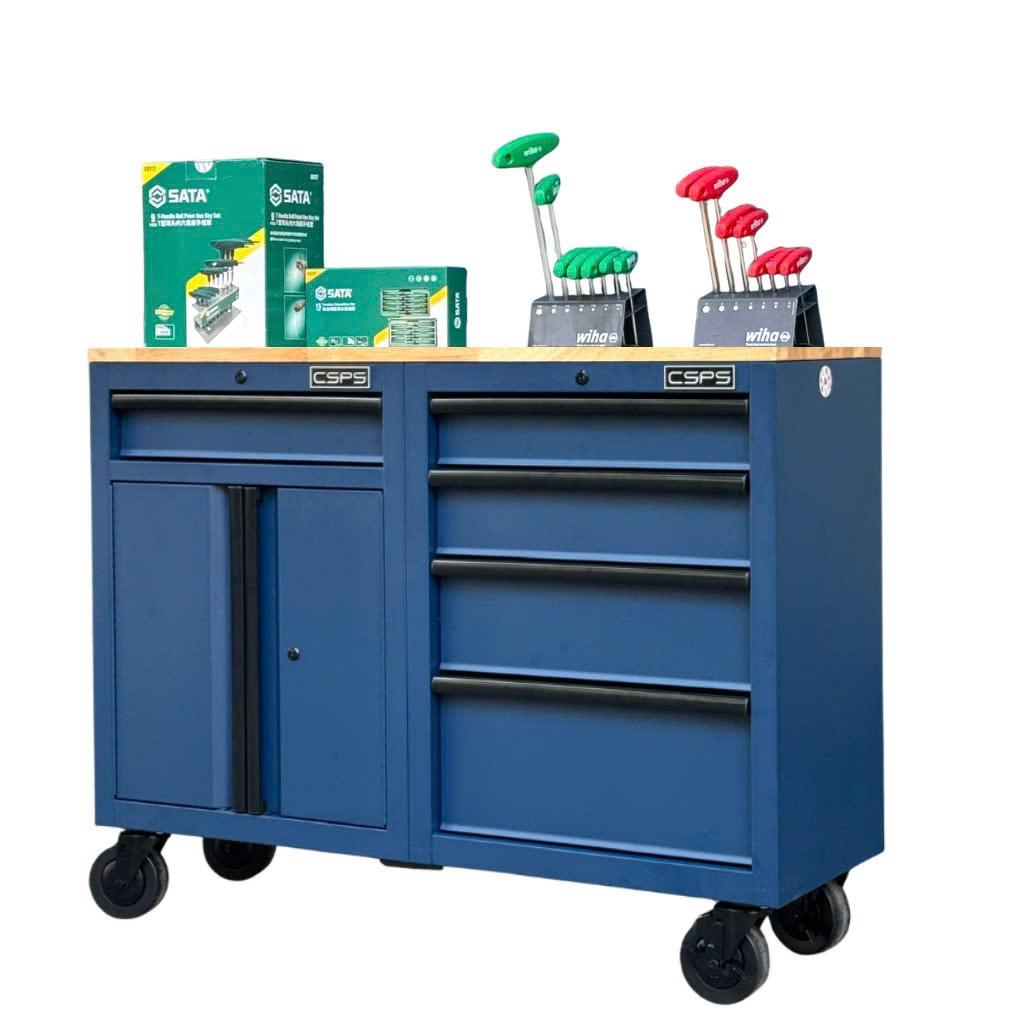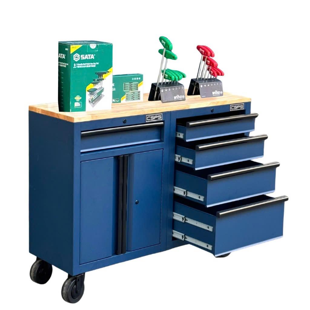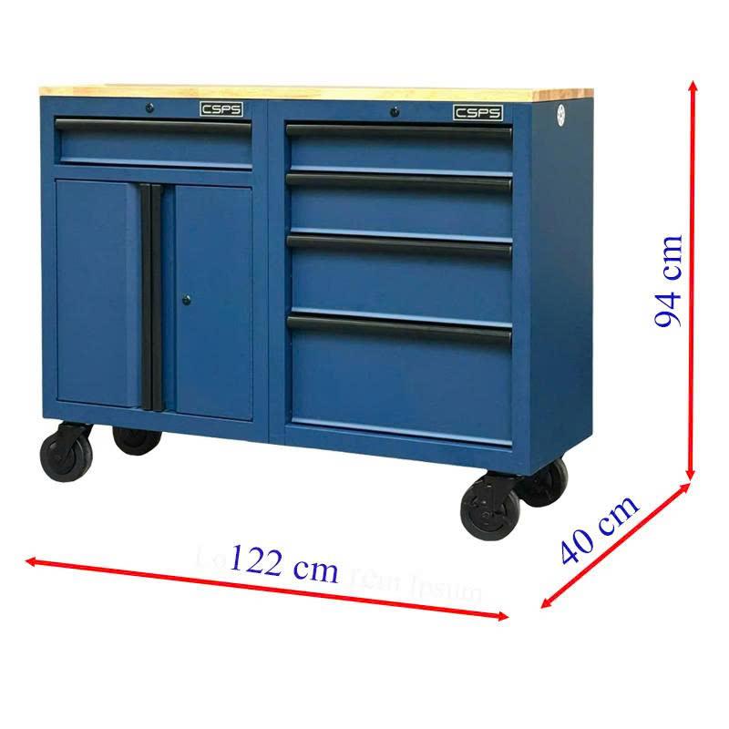 Tủ dụng cụ CSPS 122cm - 05 hộc kéo màu xanh dương mặt ván gỗ