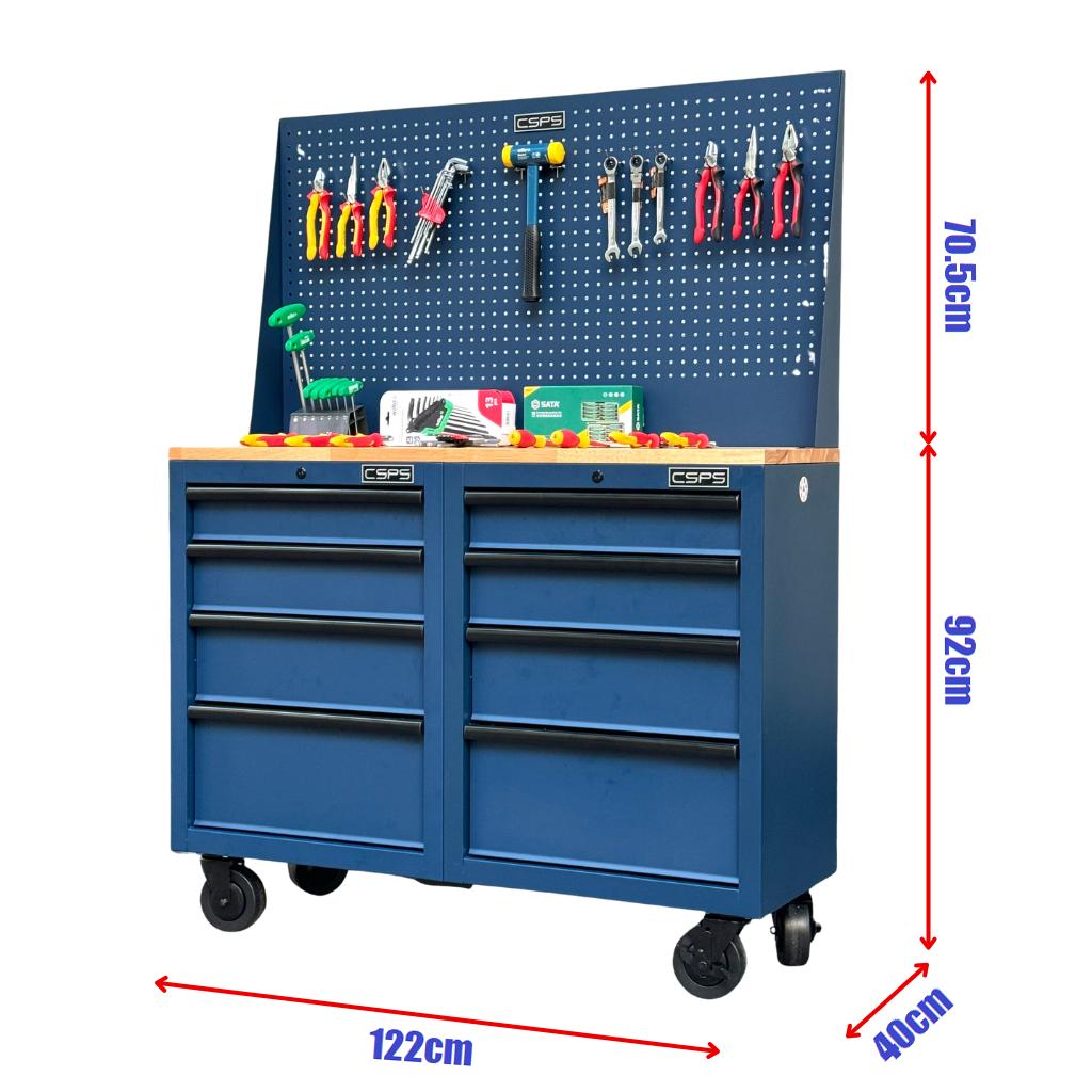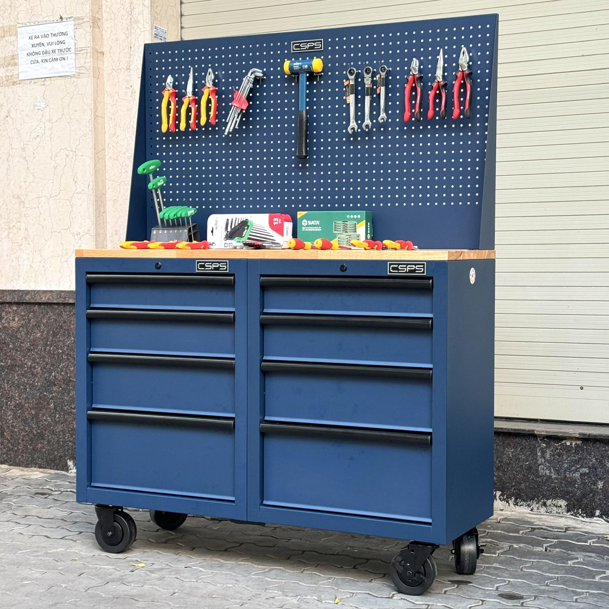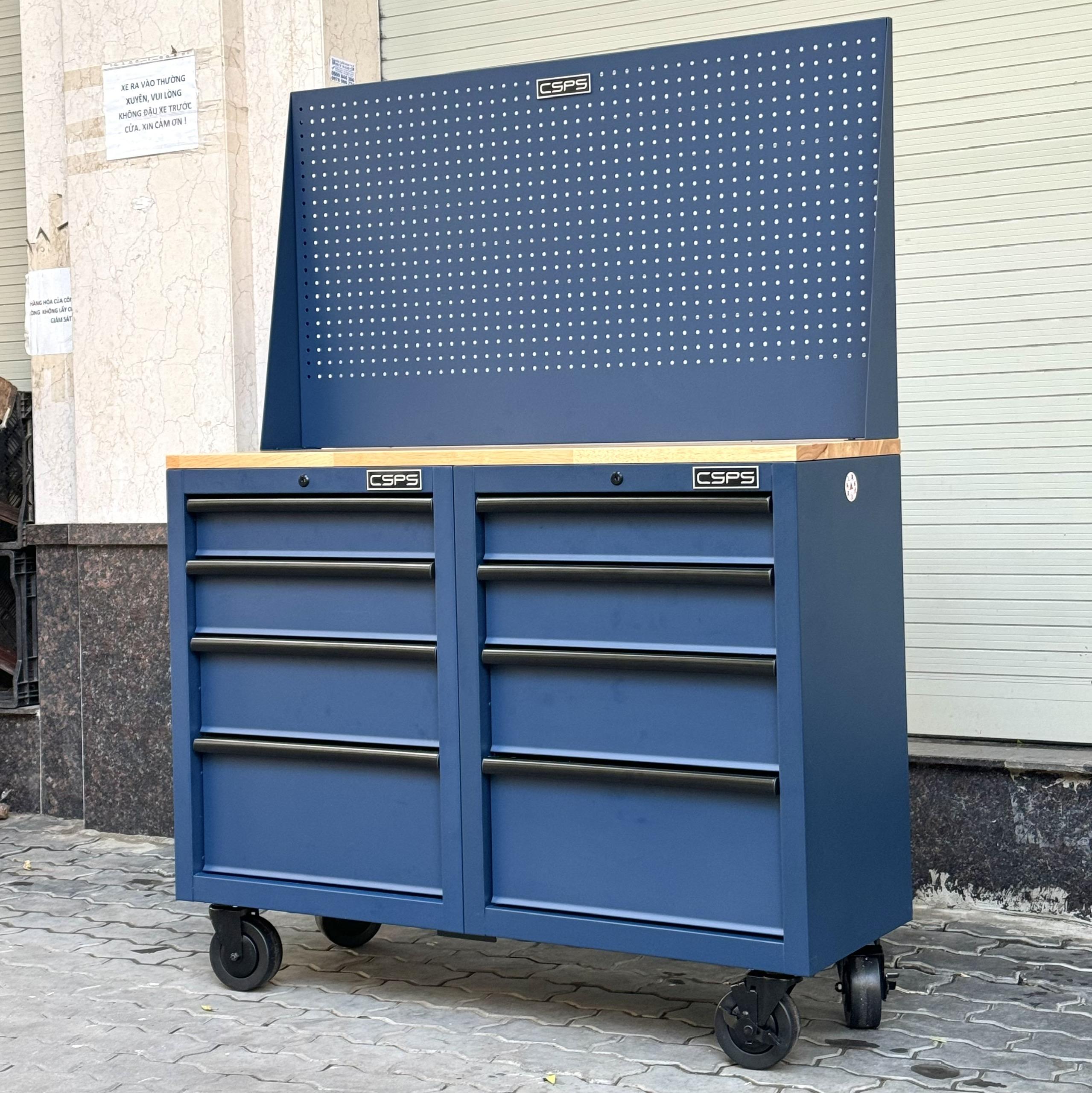 Tủ dụng cụ CSPS 122cm - 08 hộc kéo màu xanh dương kèm vách lưới
