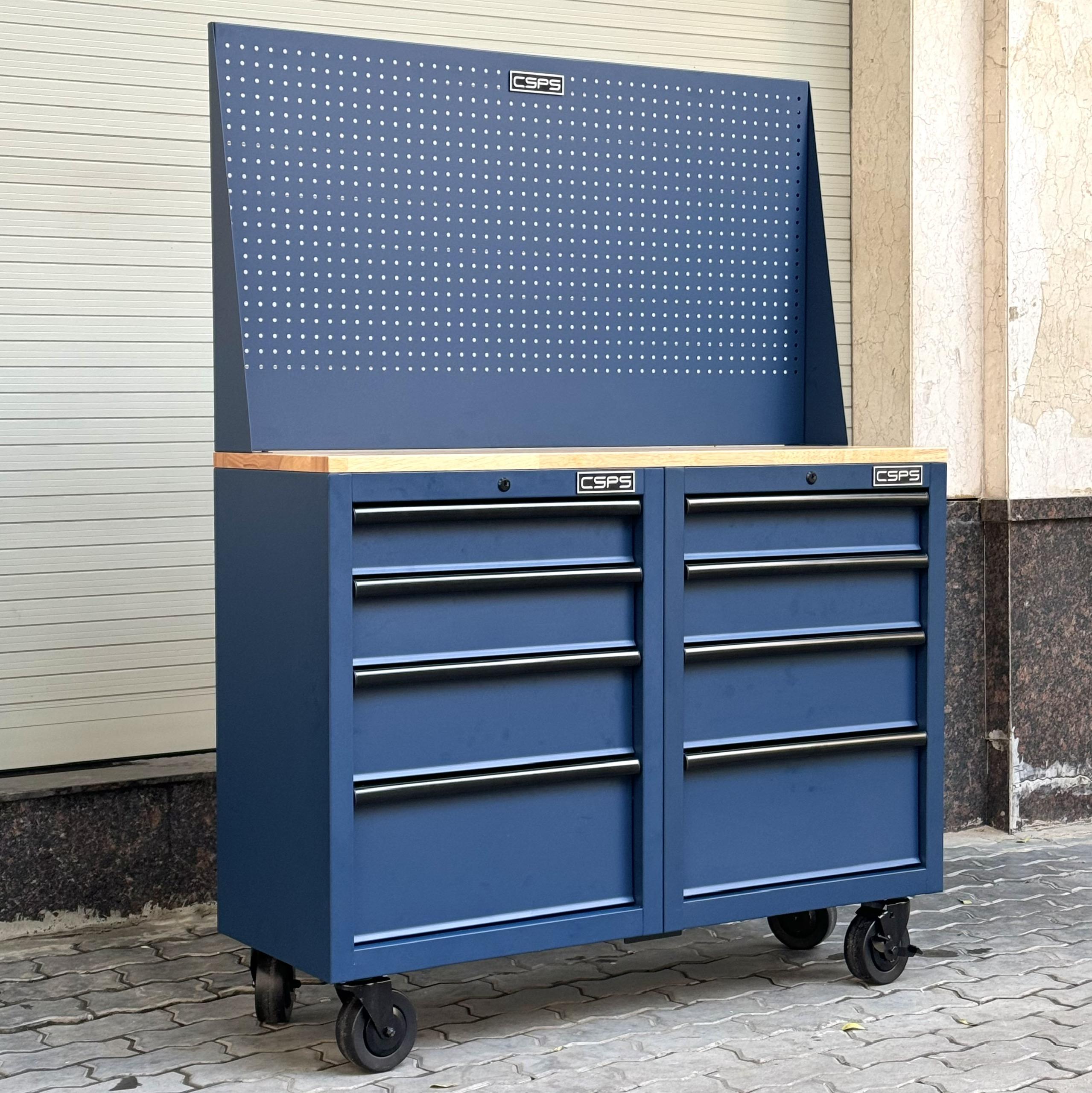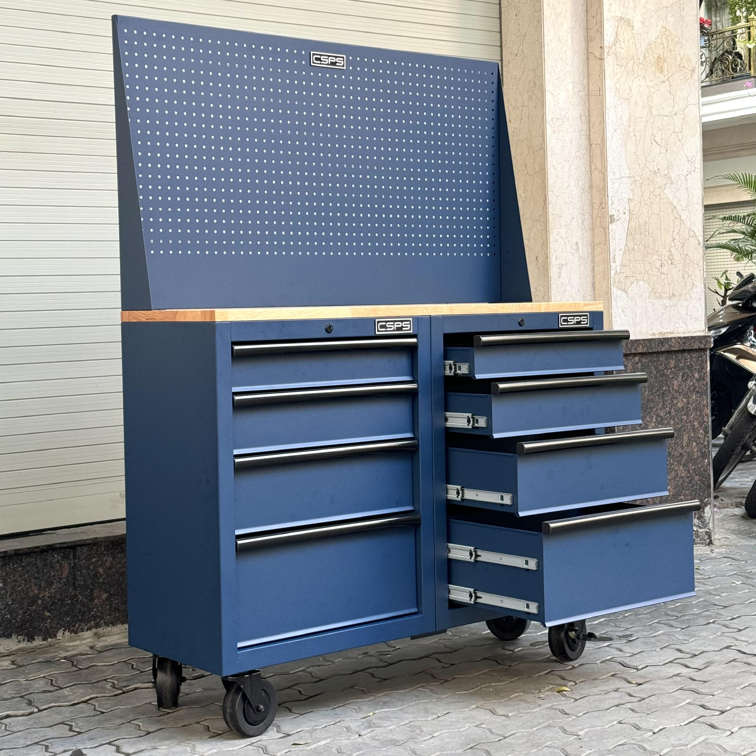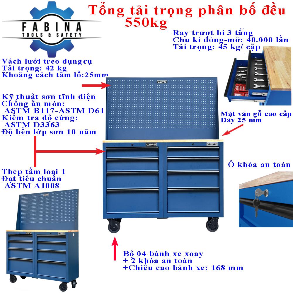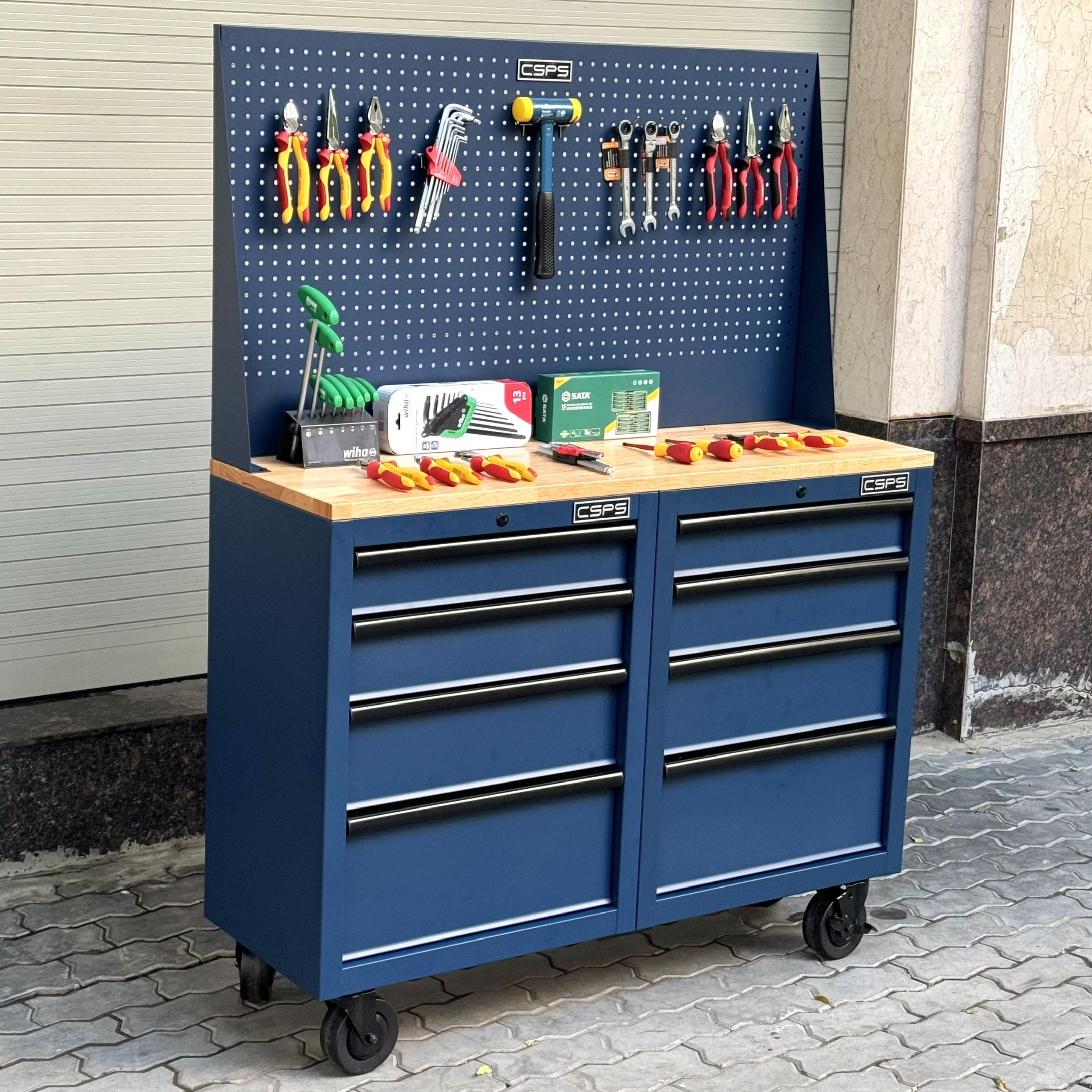 Tủ dụng cụ CSPS 122cm - 08 hộc kéo màu xanh dương kèm vách lưới