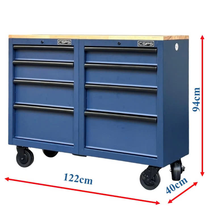 Tủ dụng cụ CSPS 122cm - 08 hộc kéo màu xanh dương mặt ván gỗ