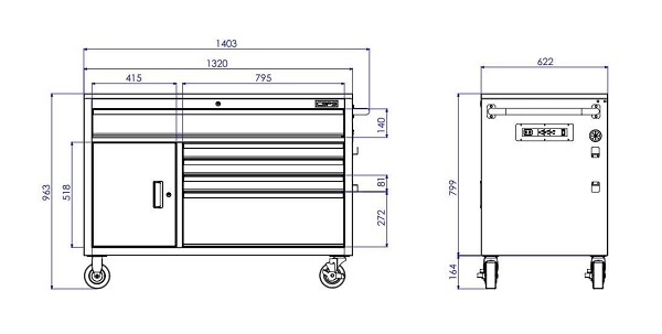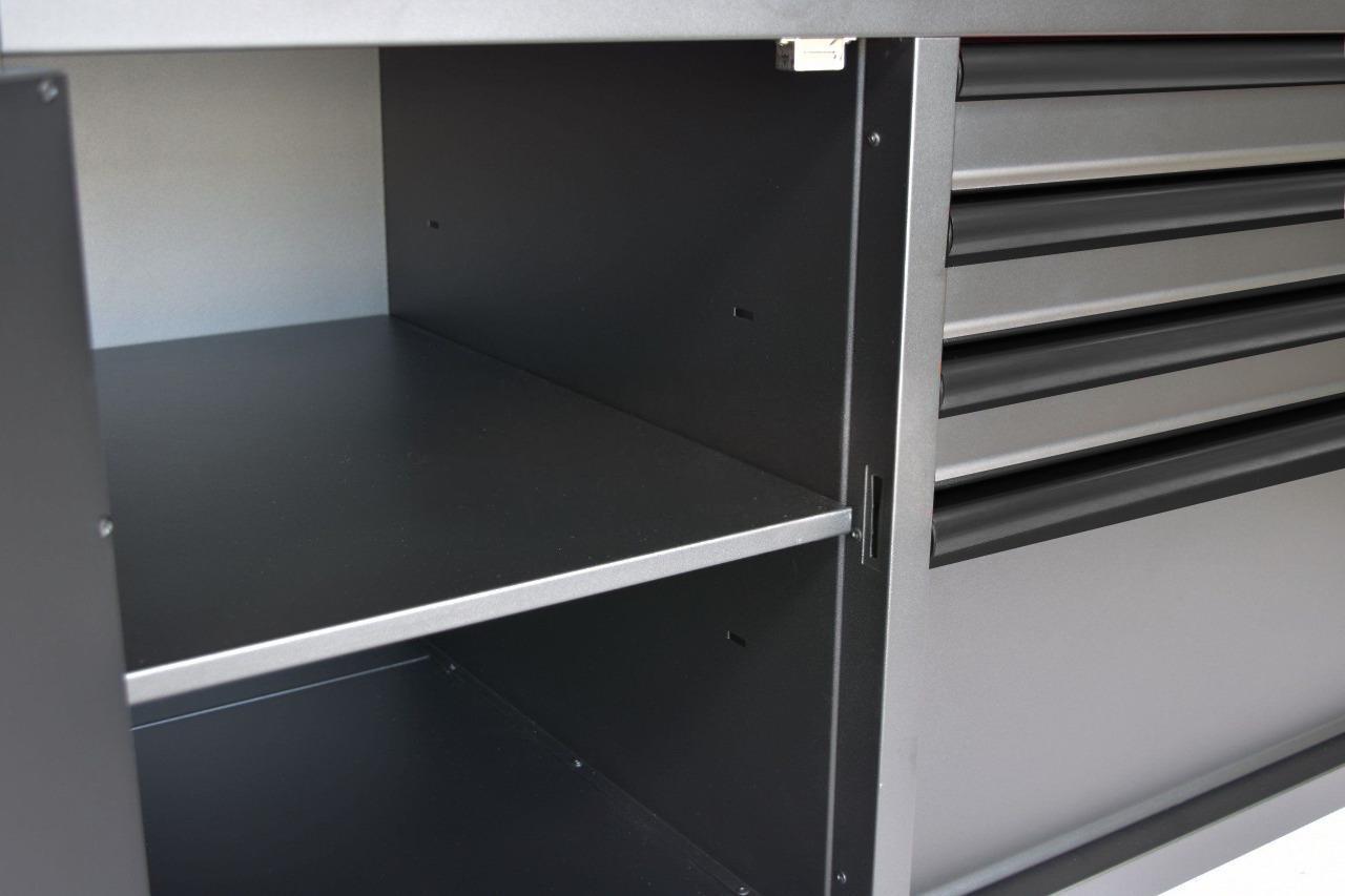 - Tiết kiệm không gian làm việc thông qua việc kết hợp bàn nguội vào tủ dụng cụ. / Save working space by combining working table with tool cabinet.