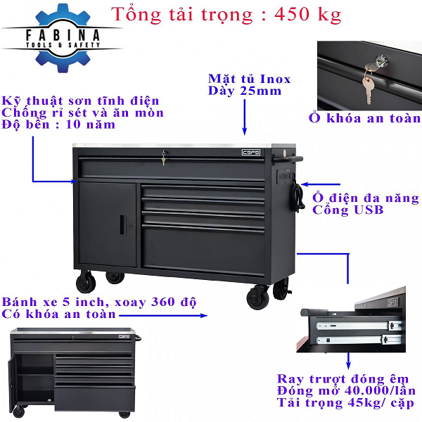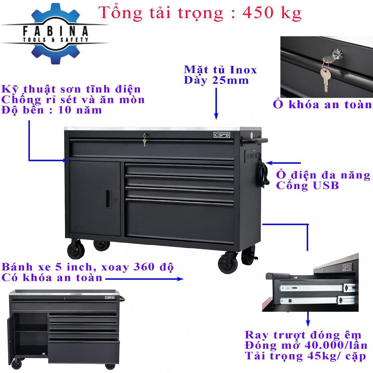 - Từ khóa: Tủ dụng cụ CSPS, Tủ đồ nghề CSPS, Tủ dụng cụ tiêu chuẩn Mỹ, Tủ CSPS