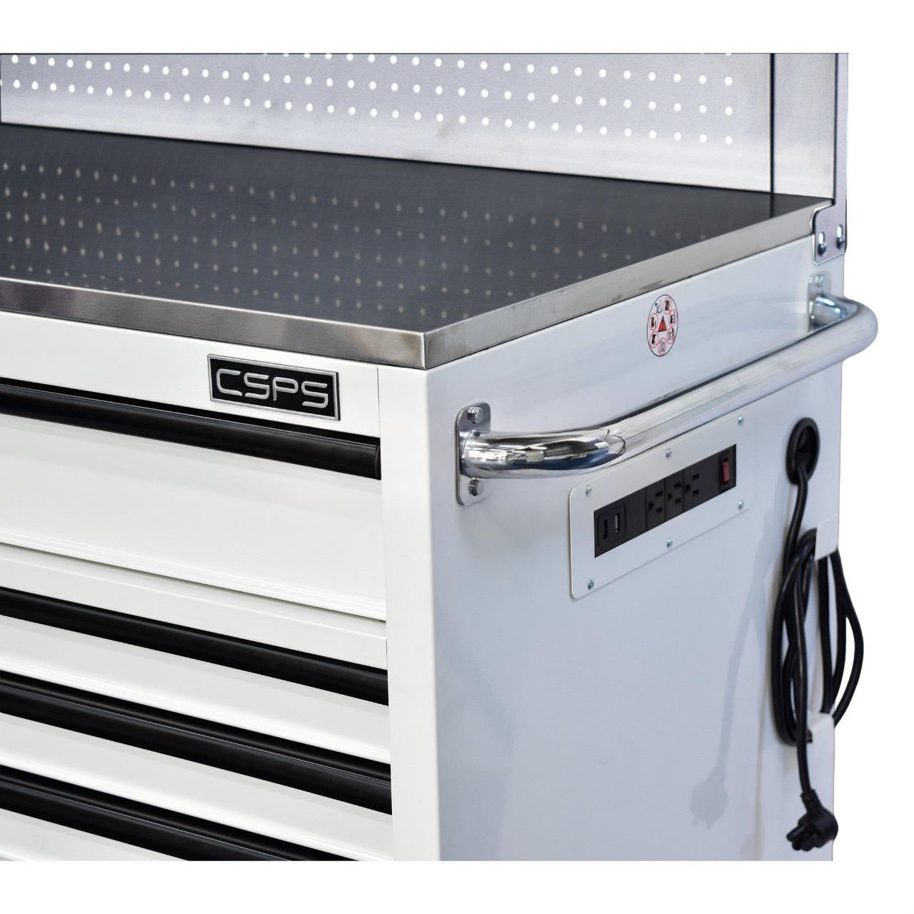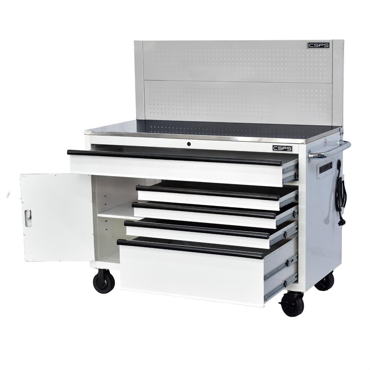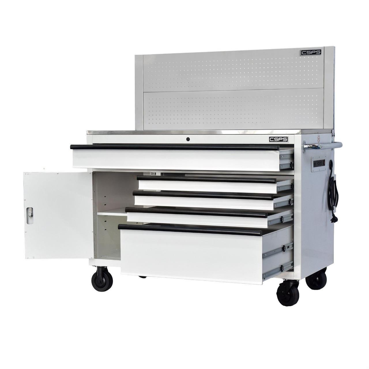 Tủ dụng cụ Tủ dụng cụ CSPS 132cm - 05 hộc kéo màu trắng, giúp bạn sắp xếp khu vực làm việc hiệu quả, là một trang bị cần thiết cho nhà máy, garage, cửa hàng hay văn phòng làm việc / CSPS tool cabinet 132 cm – 05 drawers which is suitable for workshop, factory, garage, shop, office… will help you organize working area efficiently.