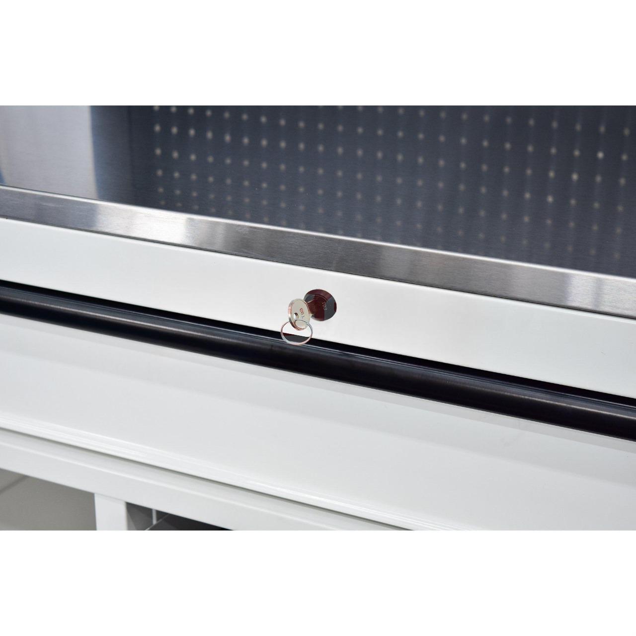 - Tiết kiệm không gian làm việc thông qua việc kết hợp bàn nguội vào tủ dụng cụ. / Save working space by combining working table with tool cabinet.