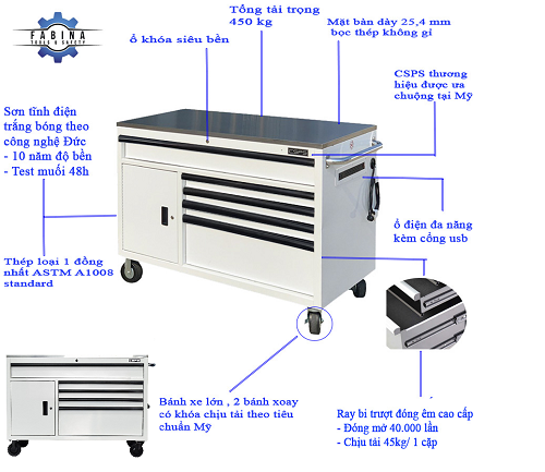- Từ khóa: Tủ dụng cụ CSPS, Tủ đồ nghề CSPS, Tủ dụng cụ tiêu chuẩn Mỹ, Tủ CSPS