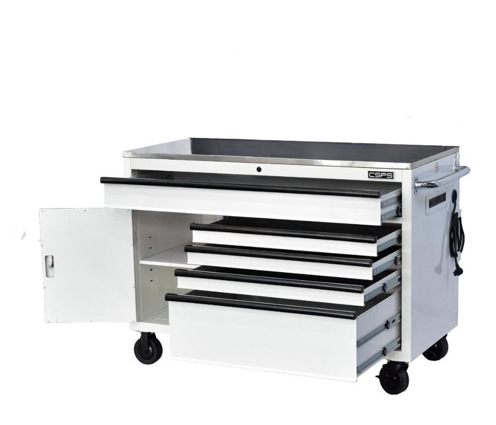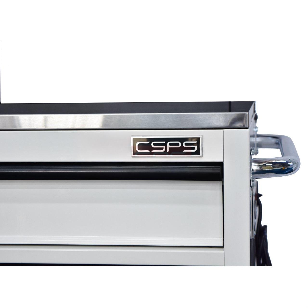 Tủ dụng cụ Tủ dụng cụ CSPS 132cm - 05 hộc kéo màu trắng, giúp bạn sắp xếp khu vực làm việc hiệu quả, là một trang bị cần thiết cho nhà máy, garage, cửa hàng hay văn phòng làm việc / CSPS tool cabinet 132 cm – 05 drawers which is suitable for workshop, factory, garage, shop, office… will help you organize working area efficiently.