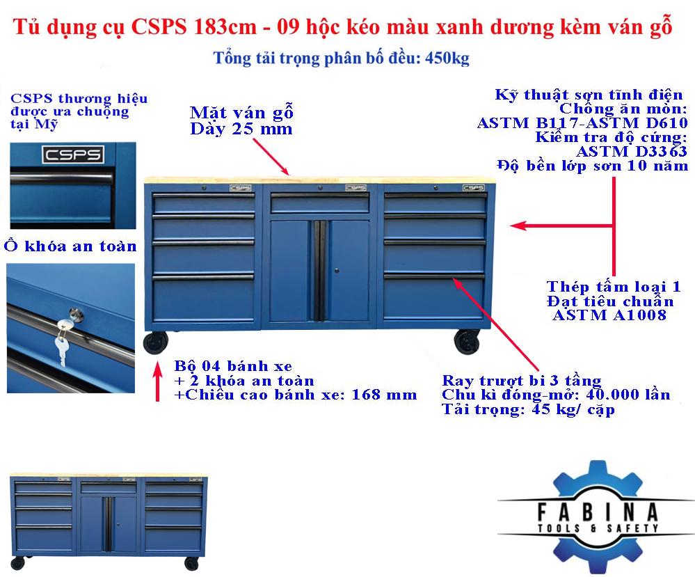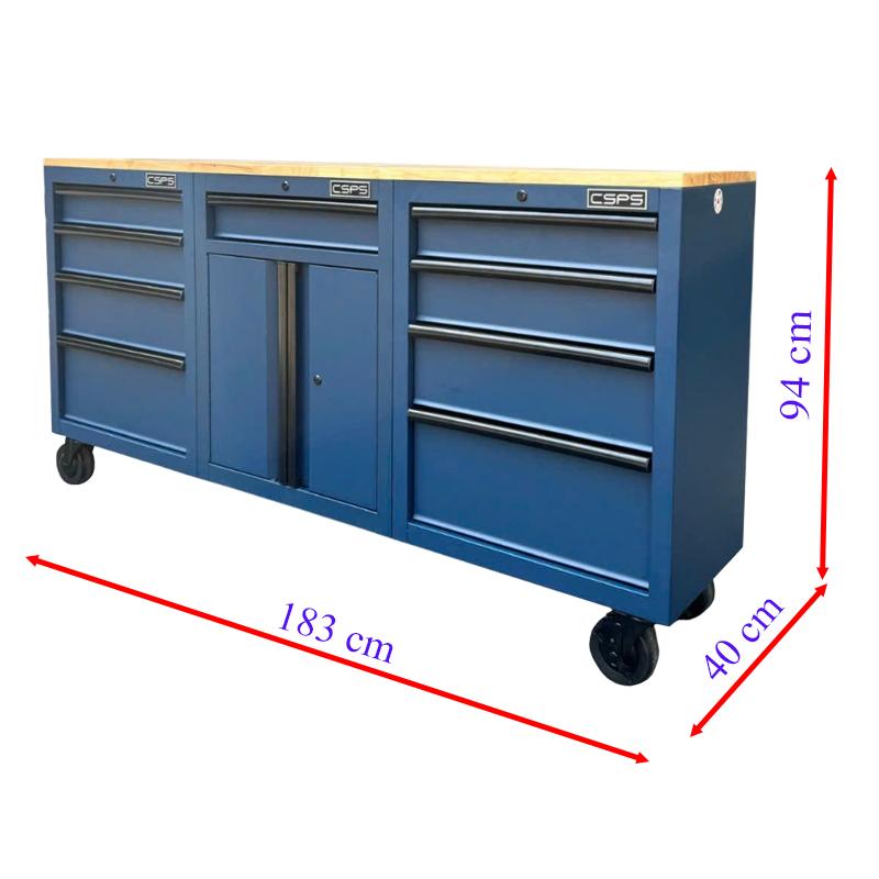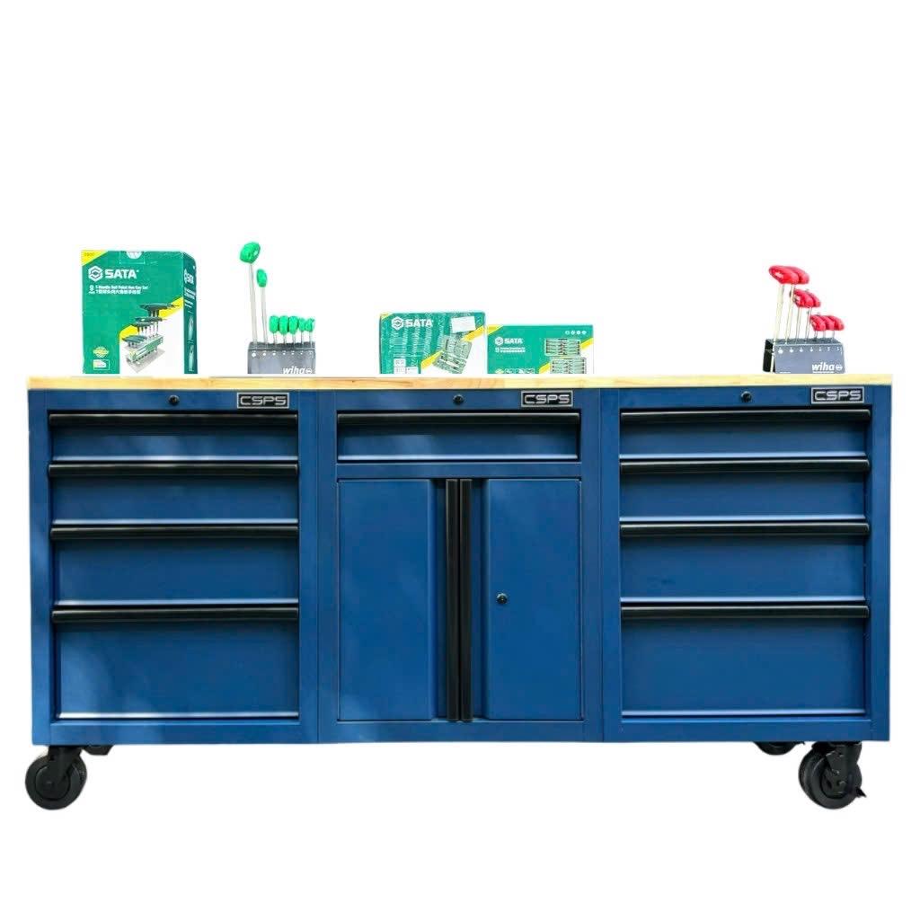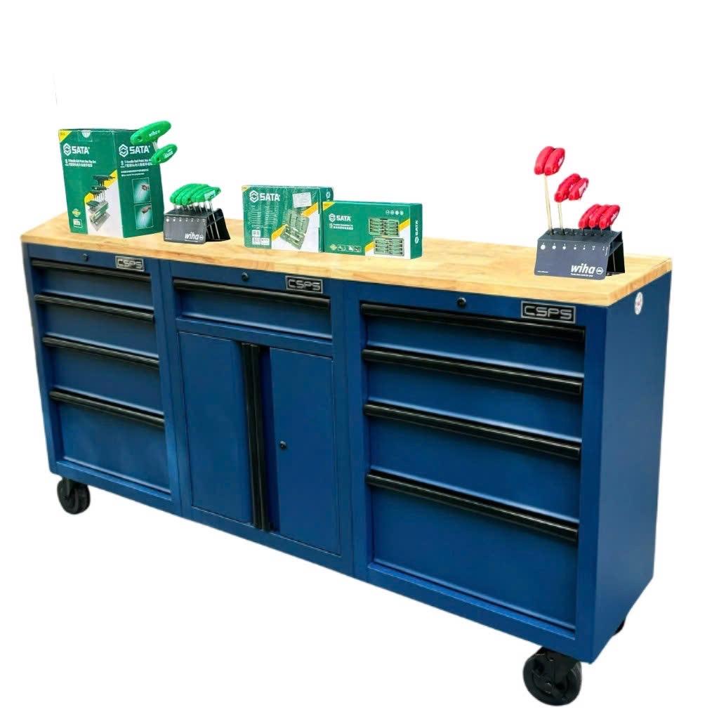 Tủ dụng cụ CSPS 183cm - 09 hộc kéo màu xanh dương mặt ván gỗ