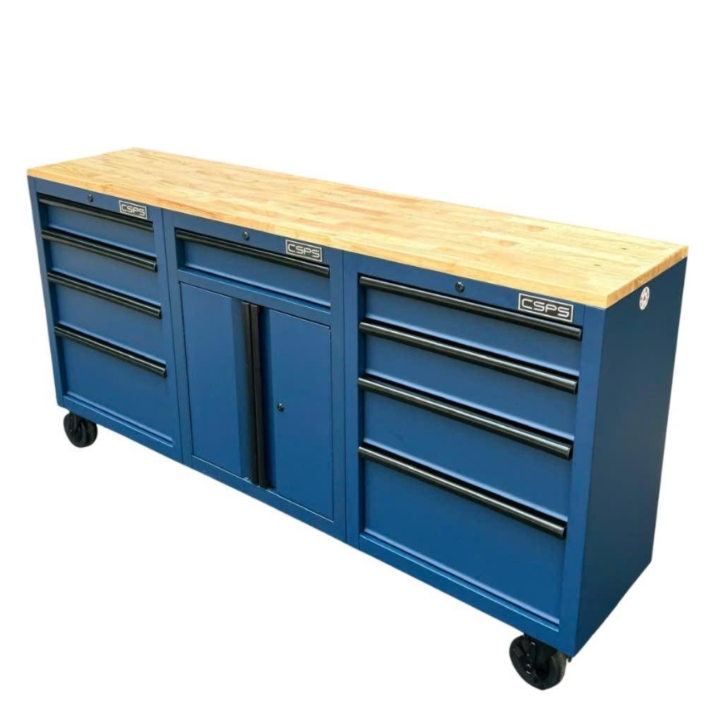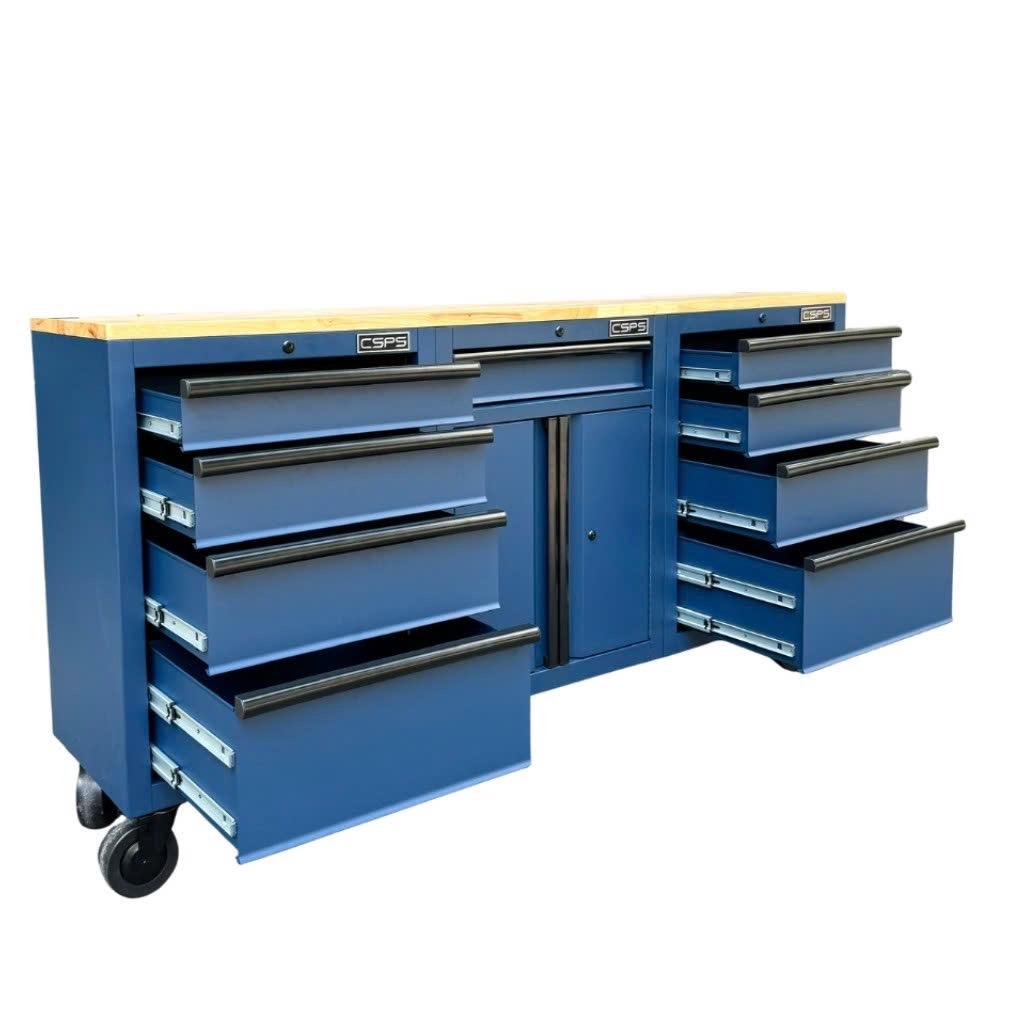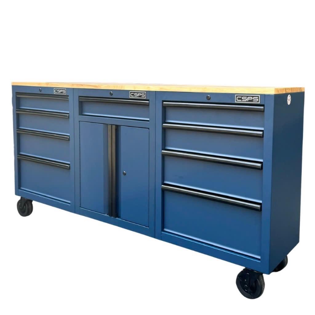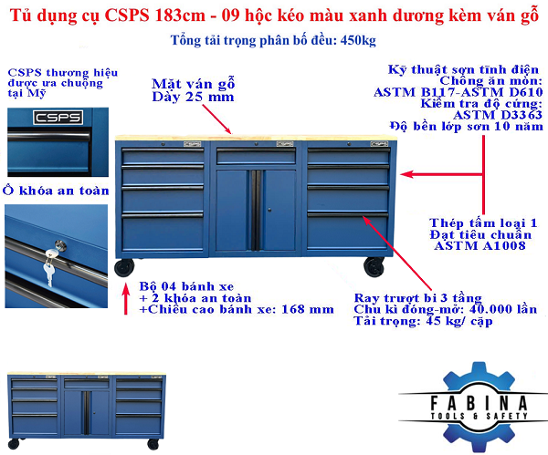 Tủ dụng cụ CSPS 183cm - 09 hộc kéo màu xanh dương mặt ván gỗ