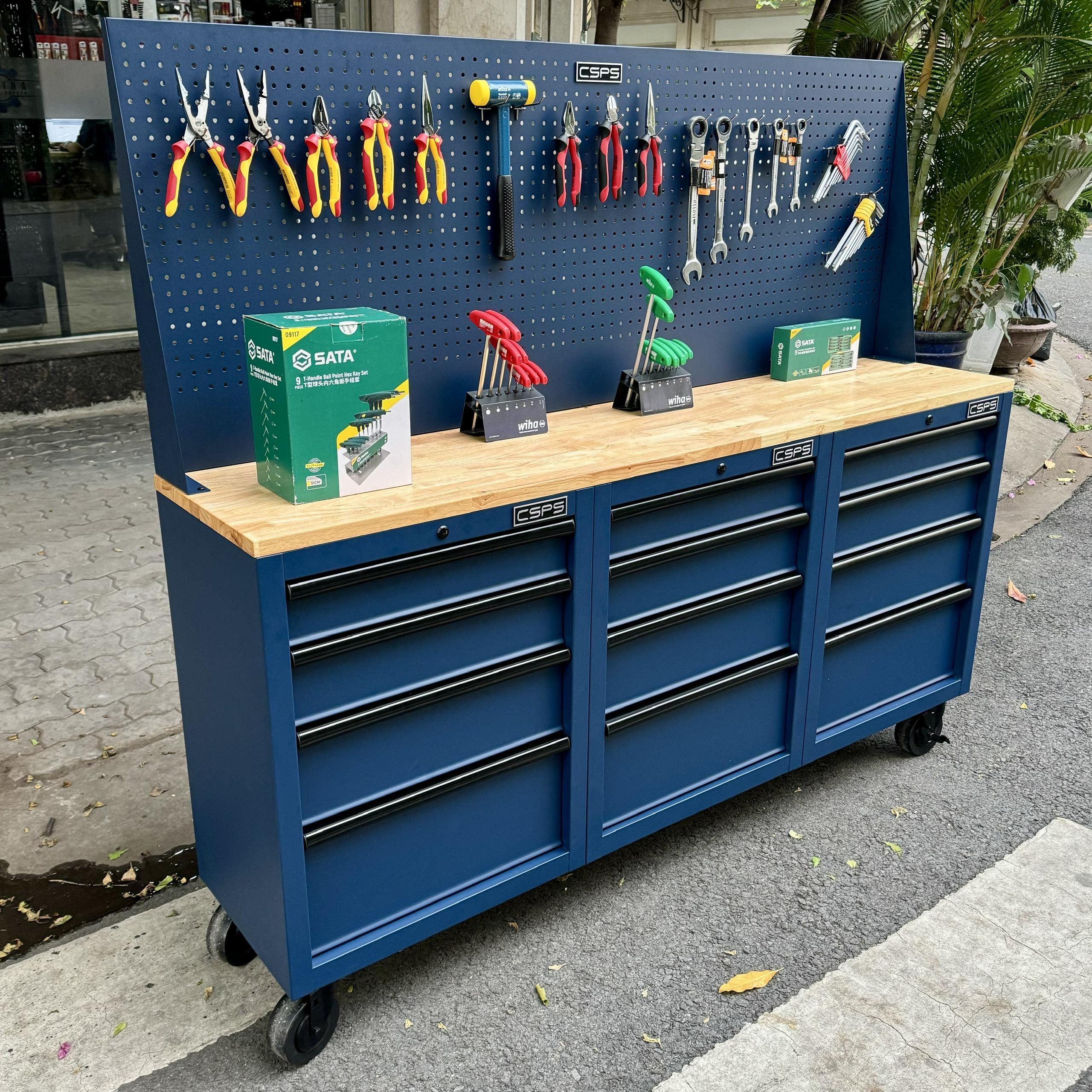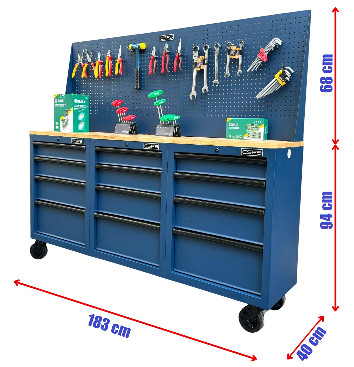 Tủ dụng cụ CSPS 183cm màu xanh dương kèm vách lưới - 12 hộc kéo