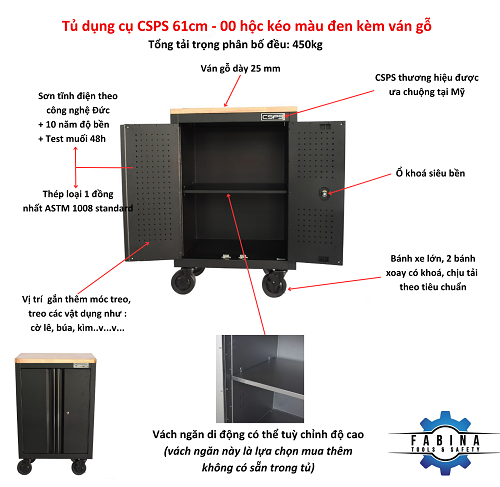 Tủ dụng cụ CSPS 61cm - 00 hộc kéo màu đen kèm ván gỗ