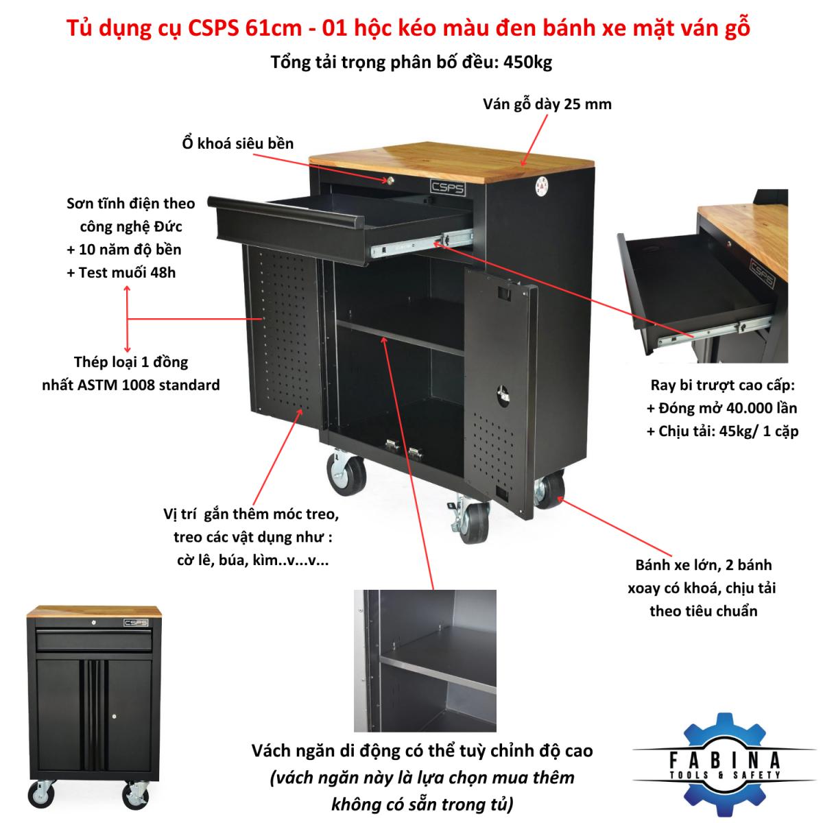 Tủ dụng cụ CSPS 61cm - 01 hộc kéo màu đen ván gỗ