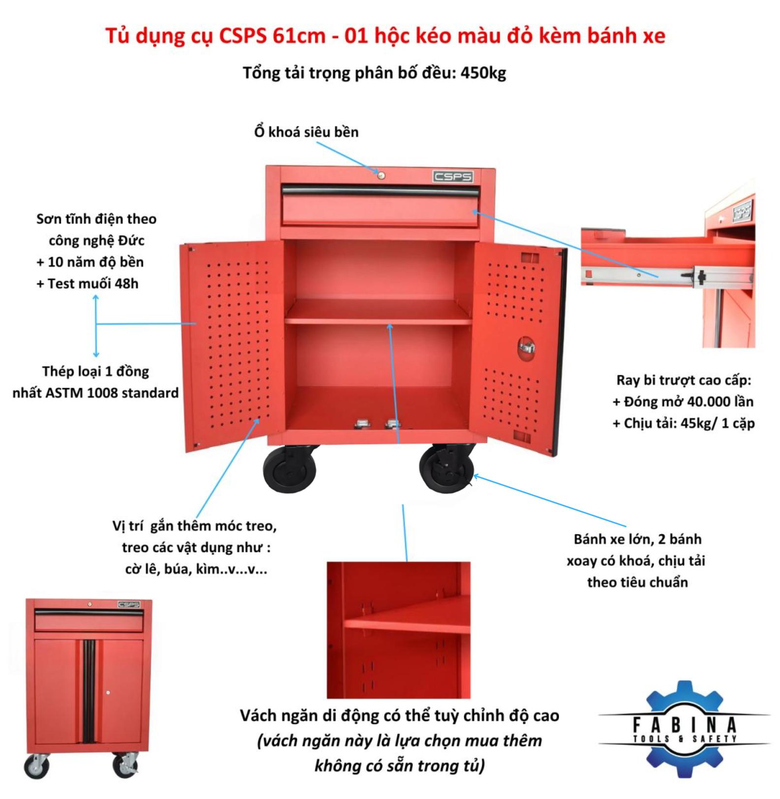 Tủ dụng cụ CSPS 61cm - 01 hộc kéo màu đỏ kèm bánh xe