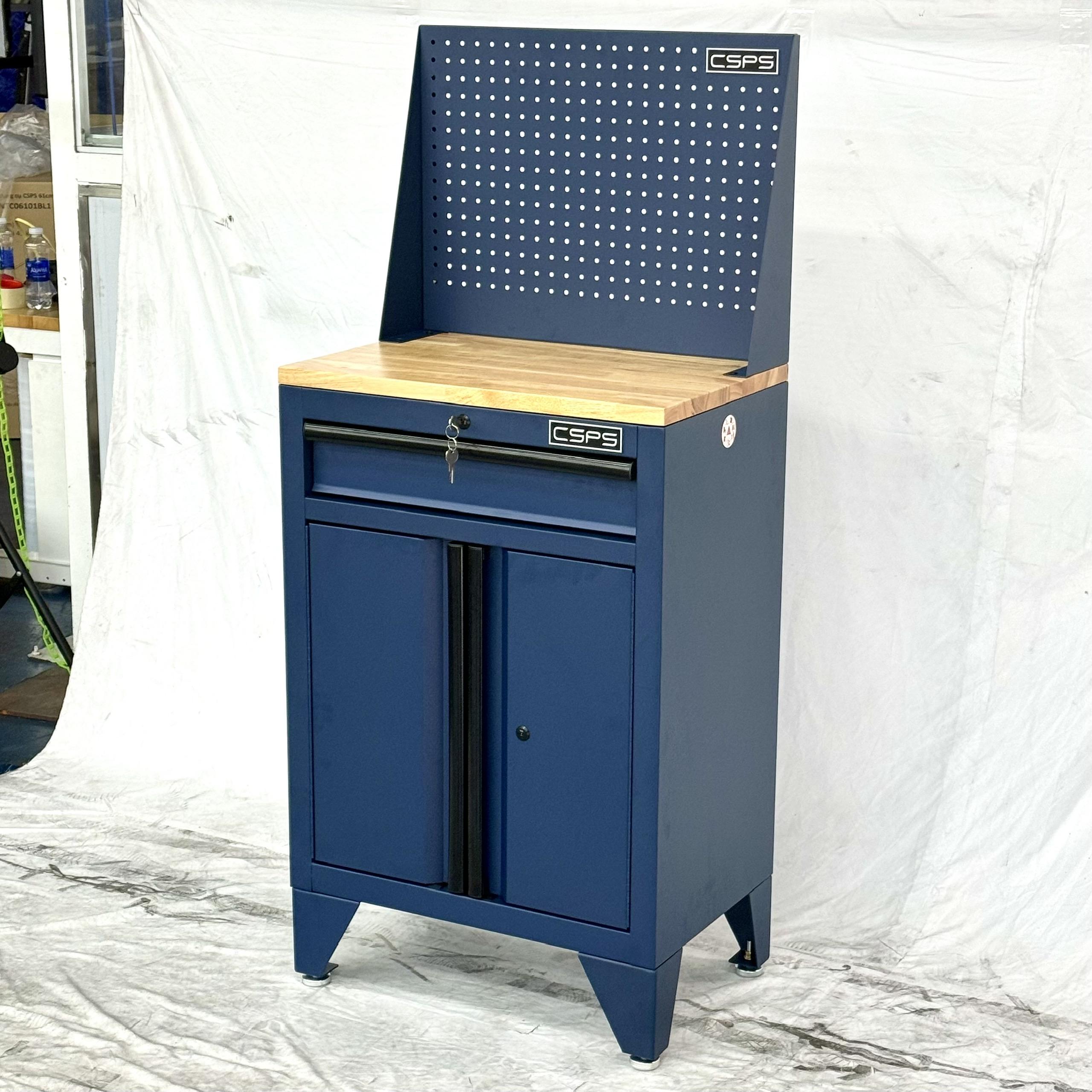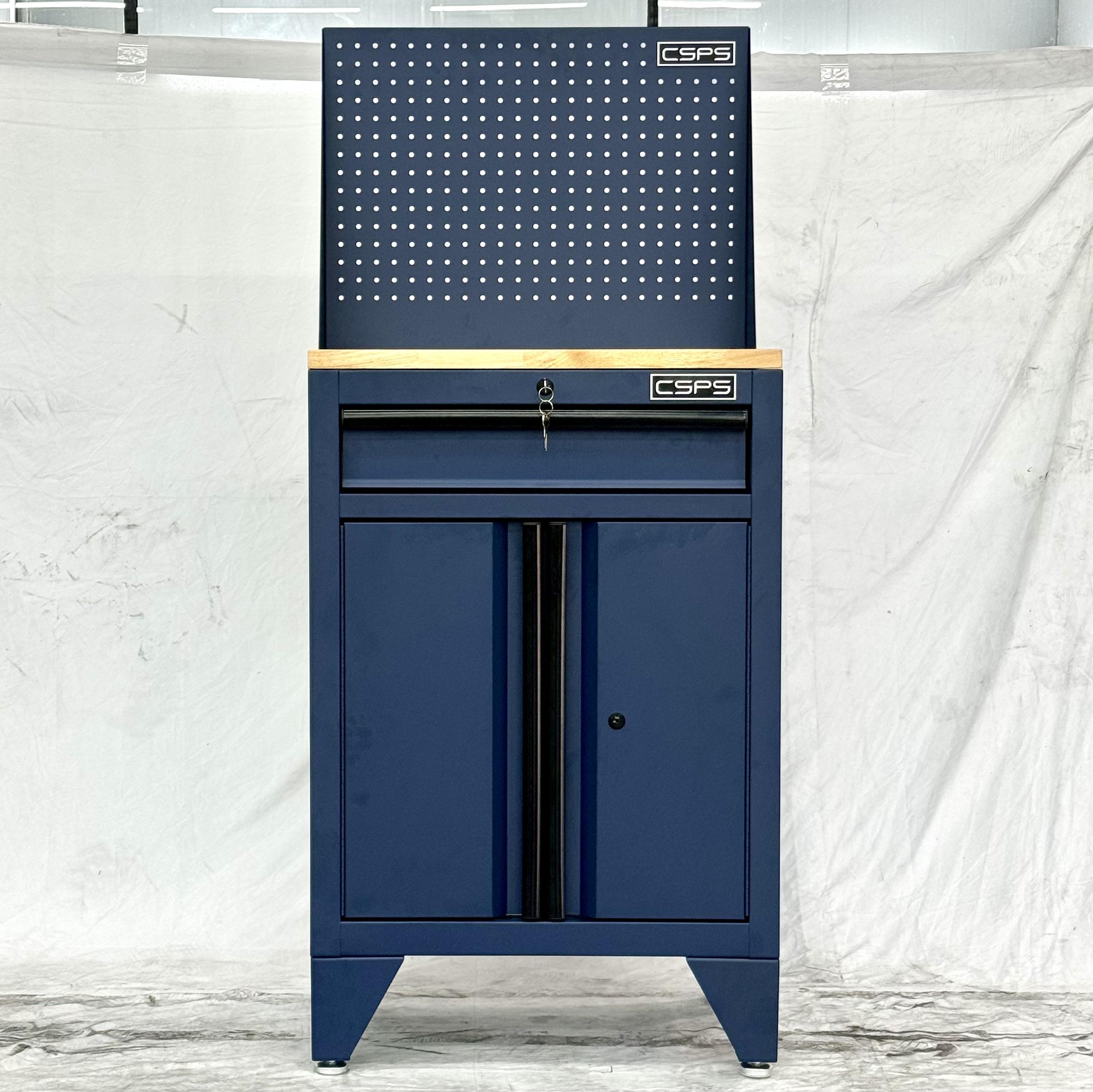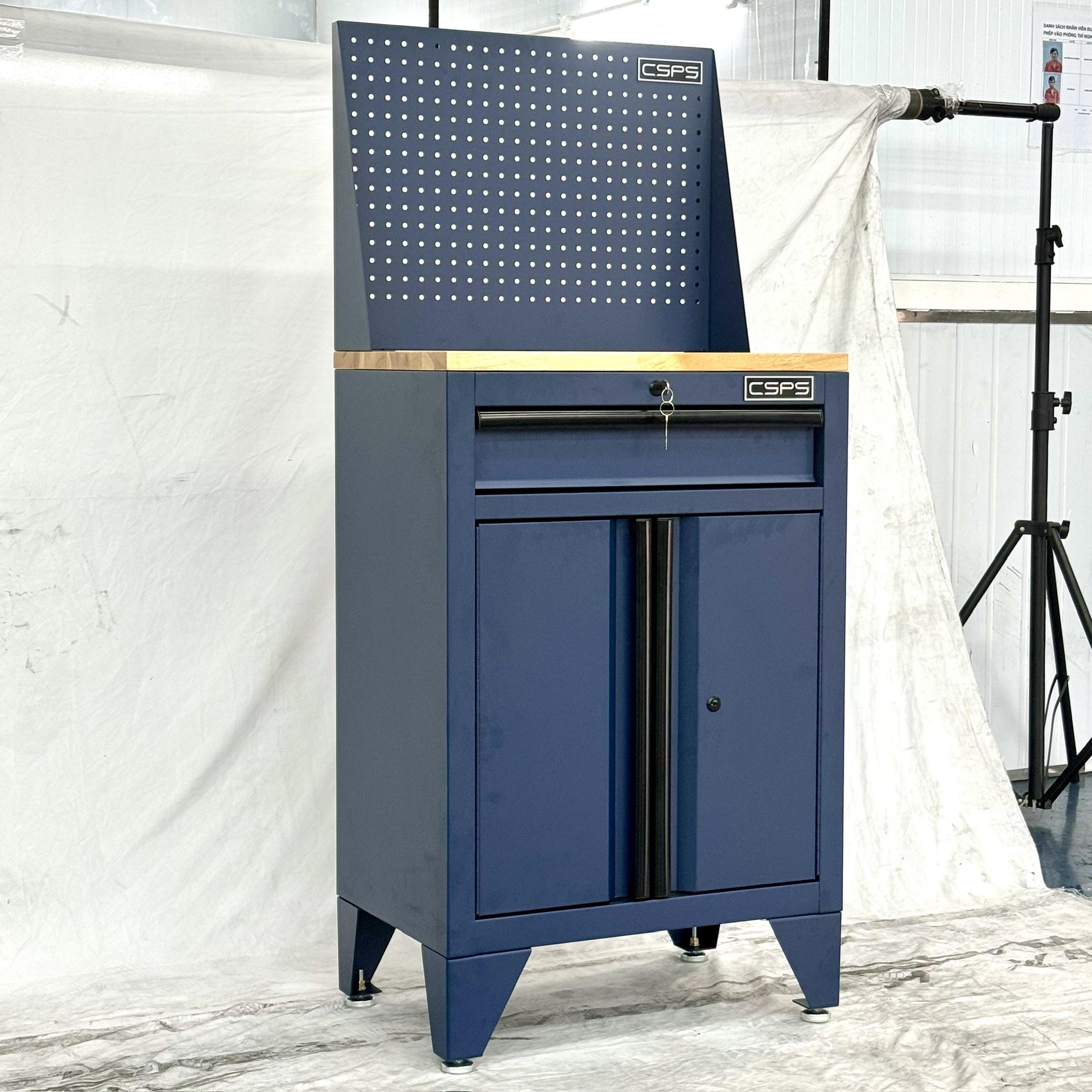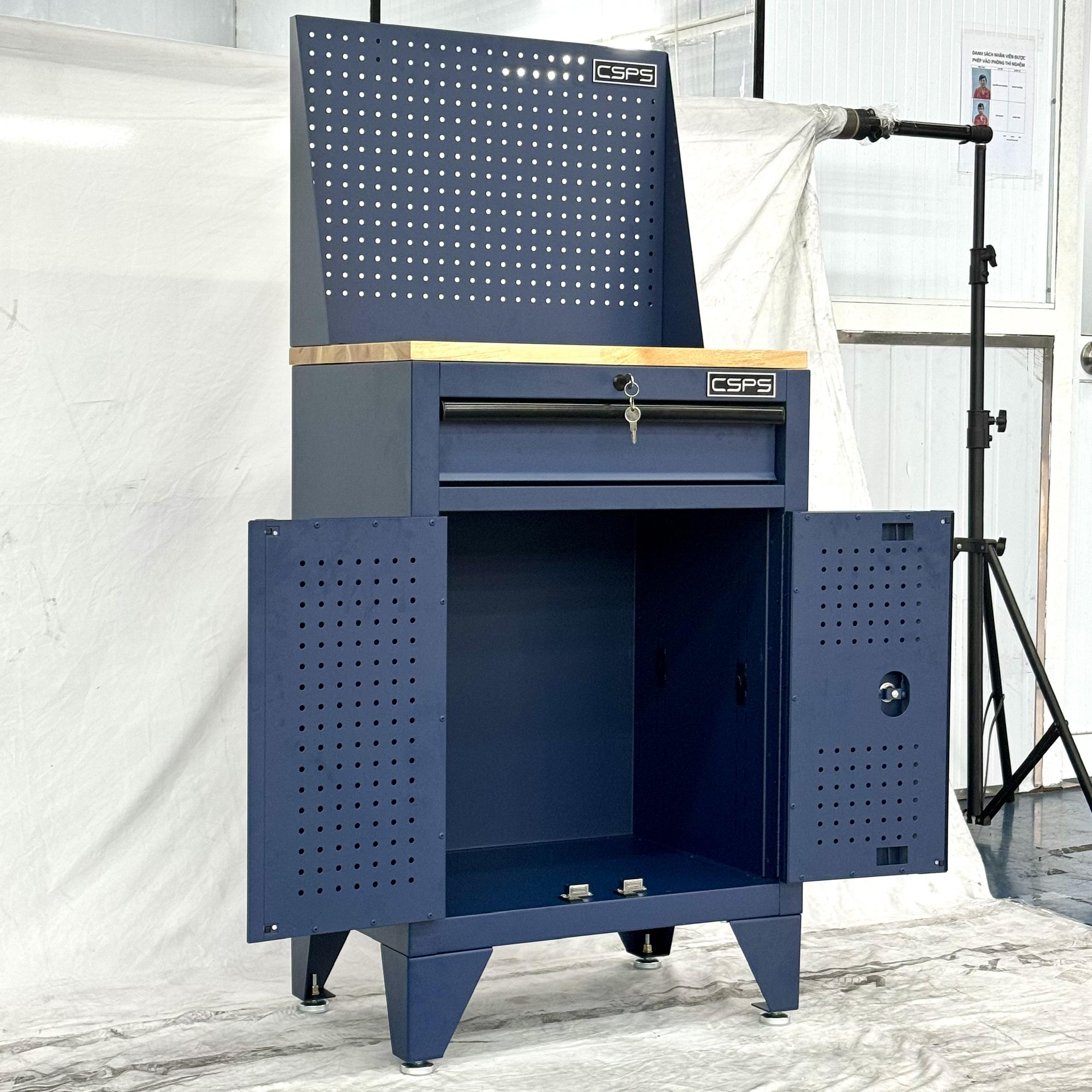 Tủ dụng cụ CSPS 61cm - 01 hộc kéo màu xanh dương kèm vách lưới ván gỗ và chân tủ
