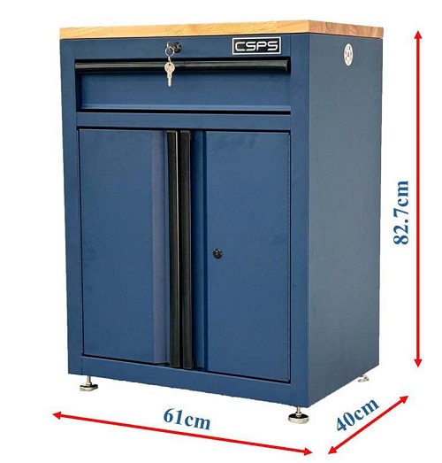Tủ dụng cụ CSPS 61cm - 01 hộc kéo màu xanh dương kèm ván gỗ và chân tăng chỉnh