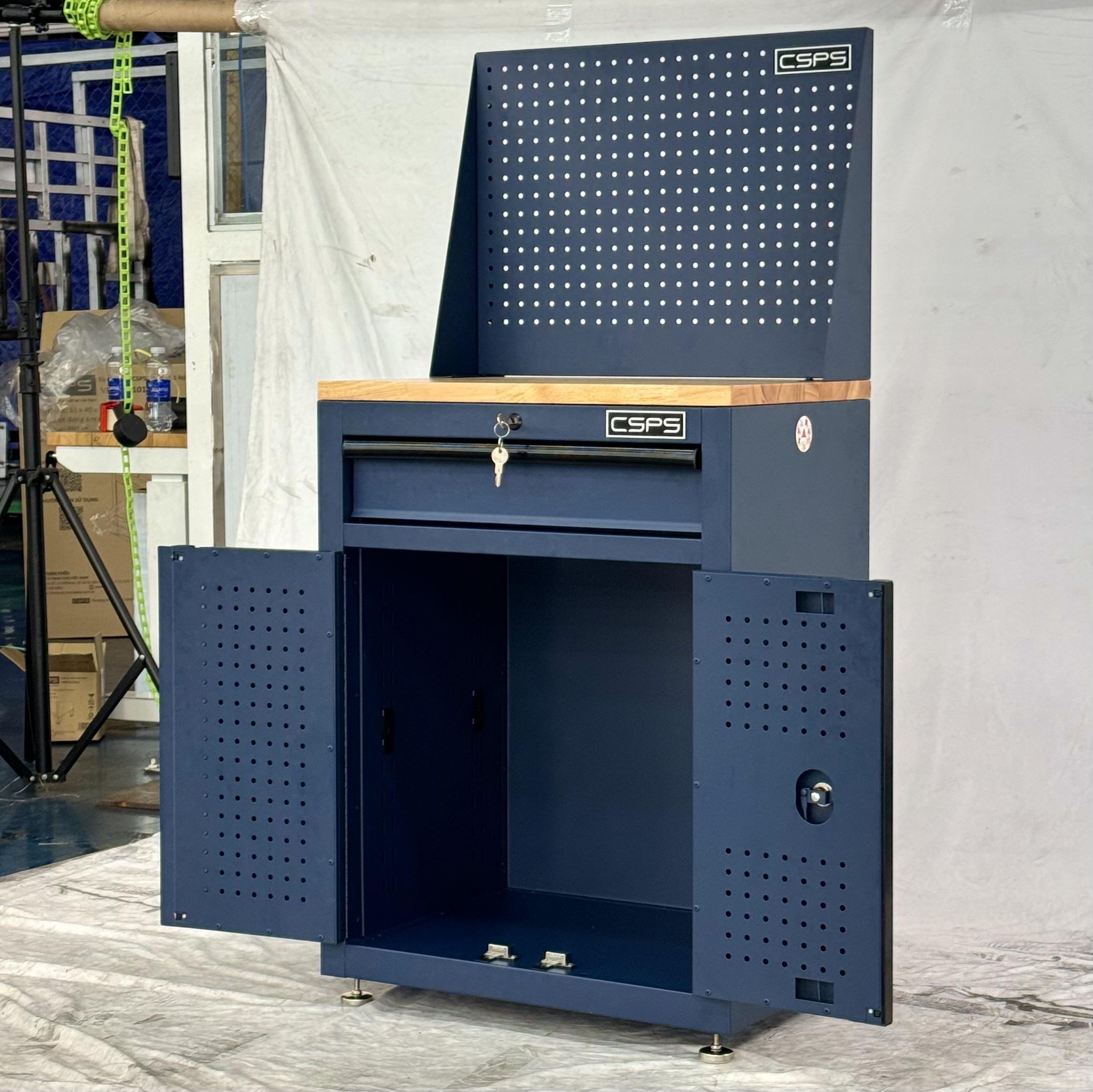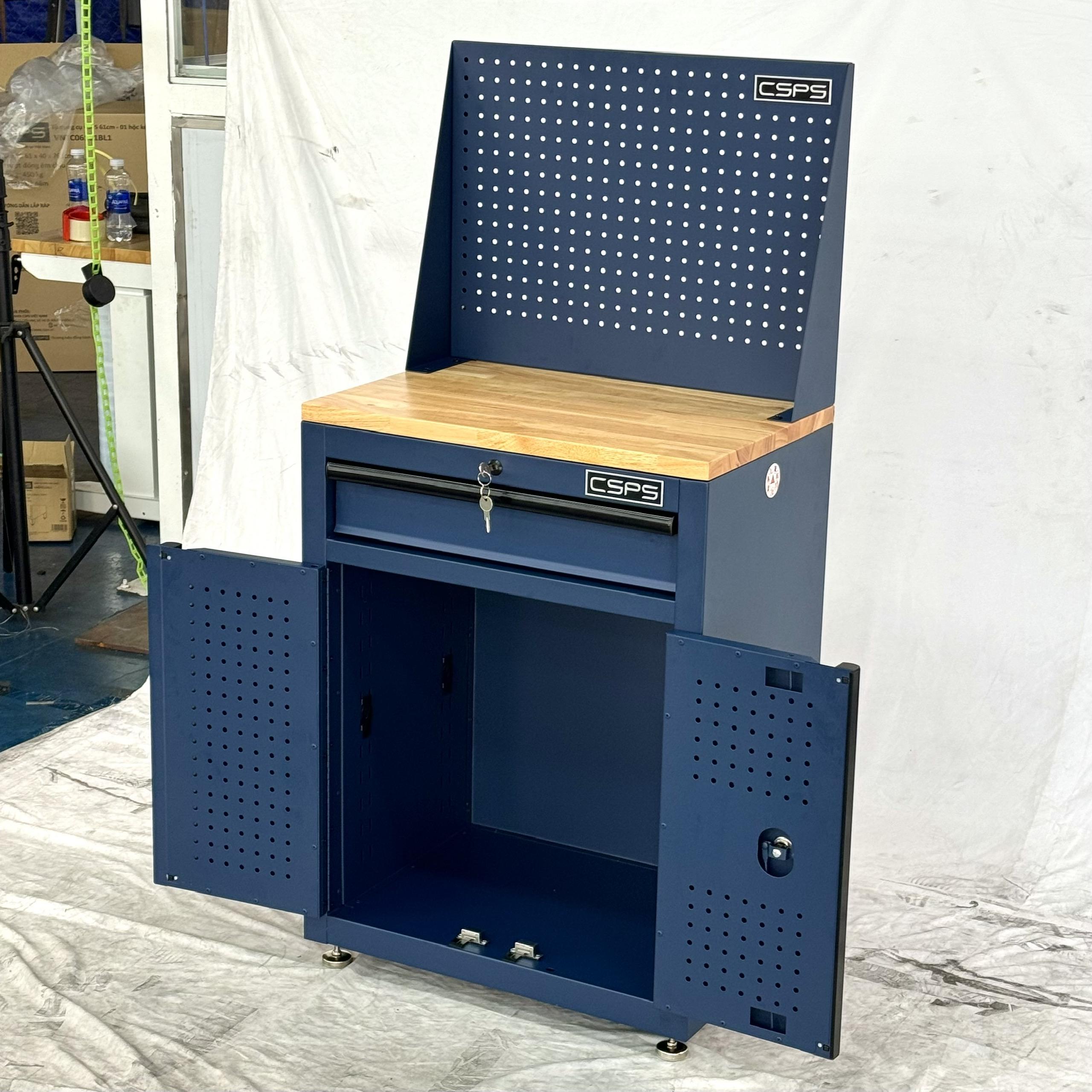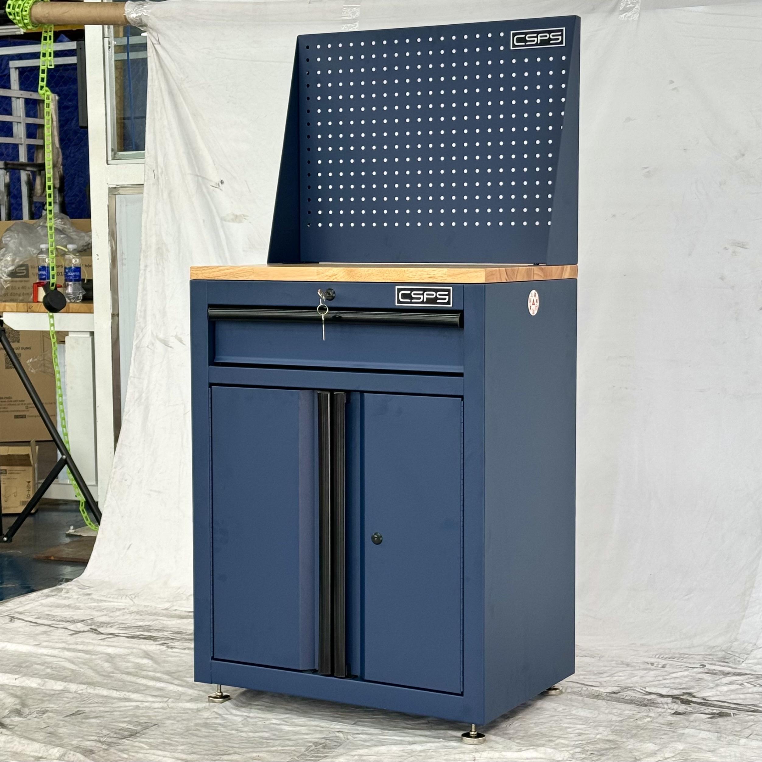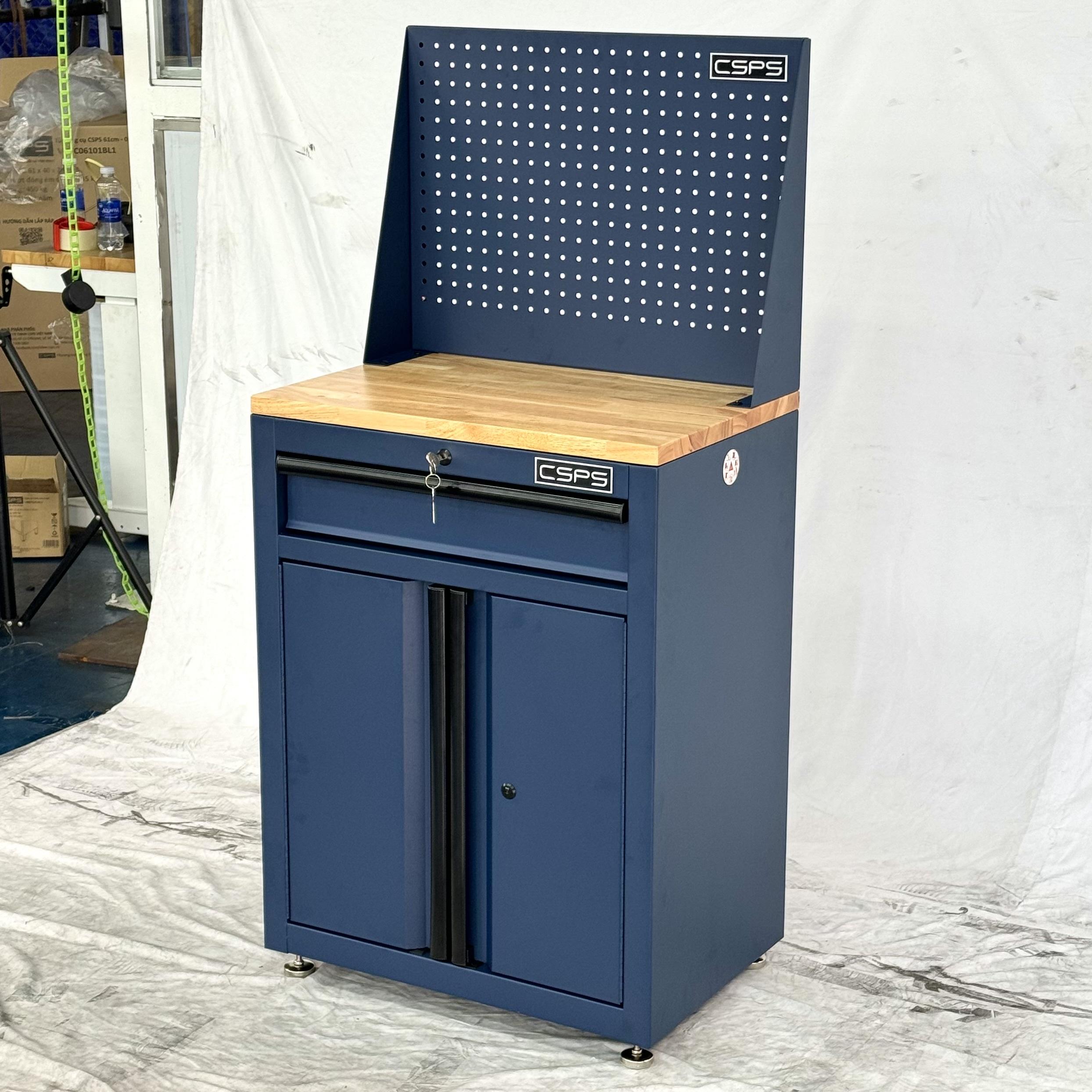 Tủ dụng cụ CSPS 61cm - 01 hộc kéo màu xanh dương kèm ván gỗ vách lưới và chân tăng chỉnh