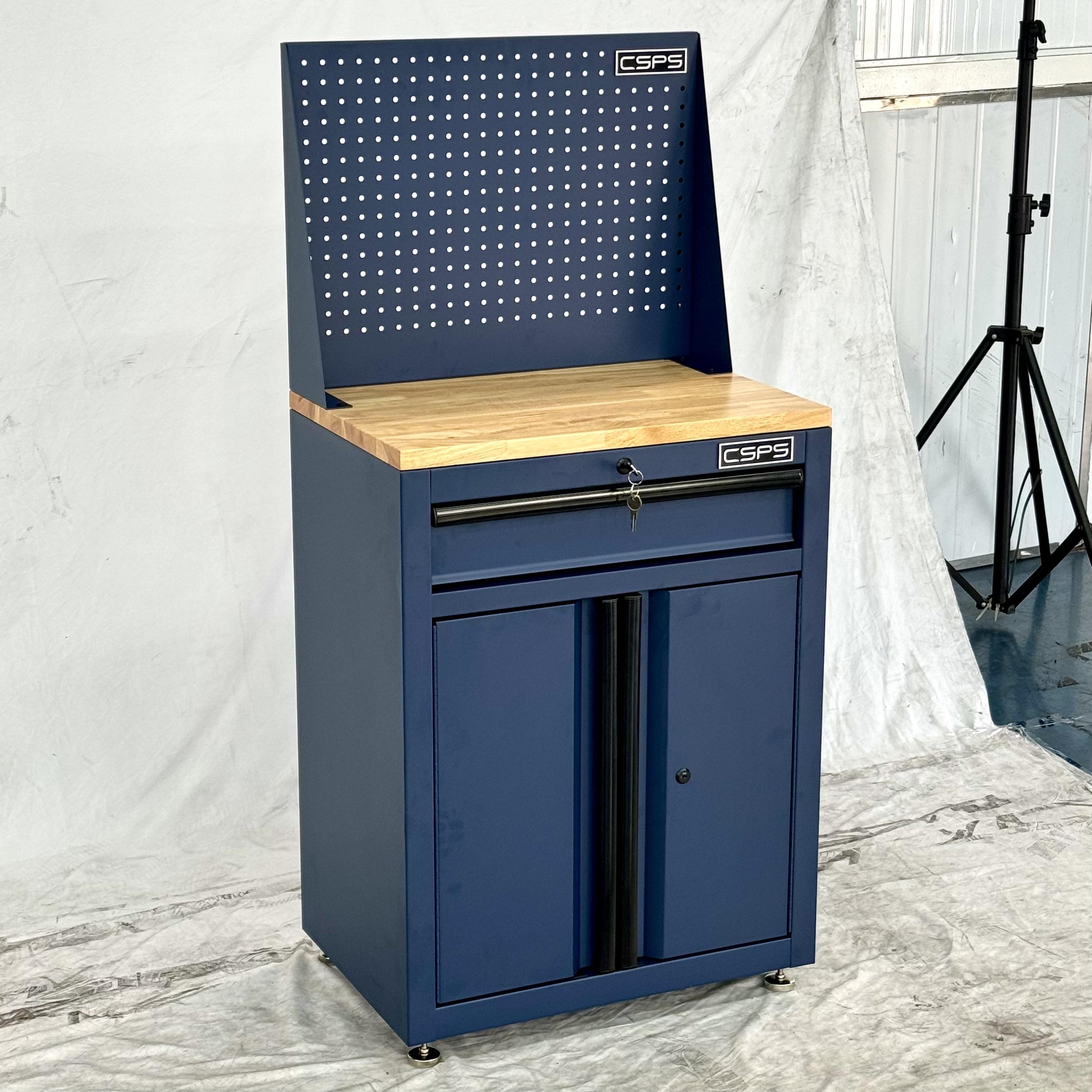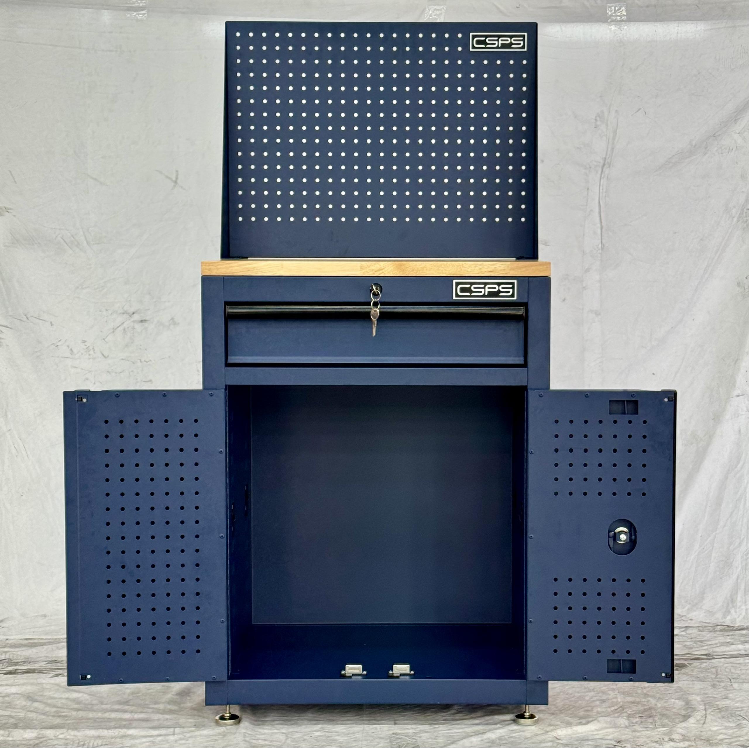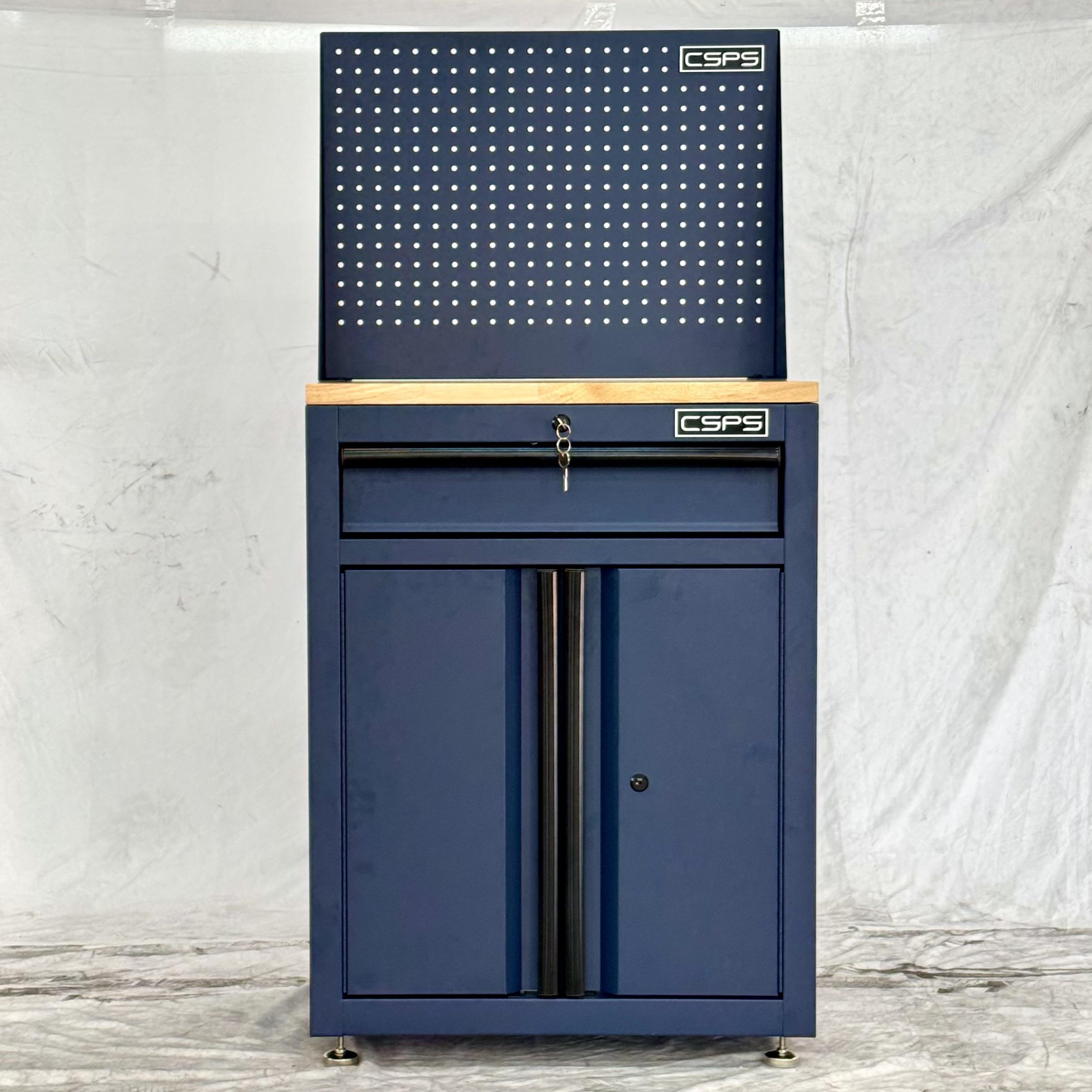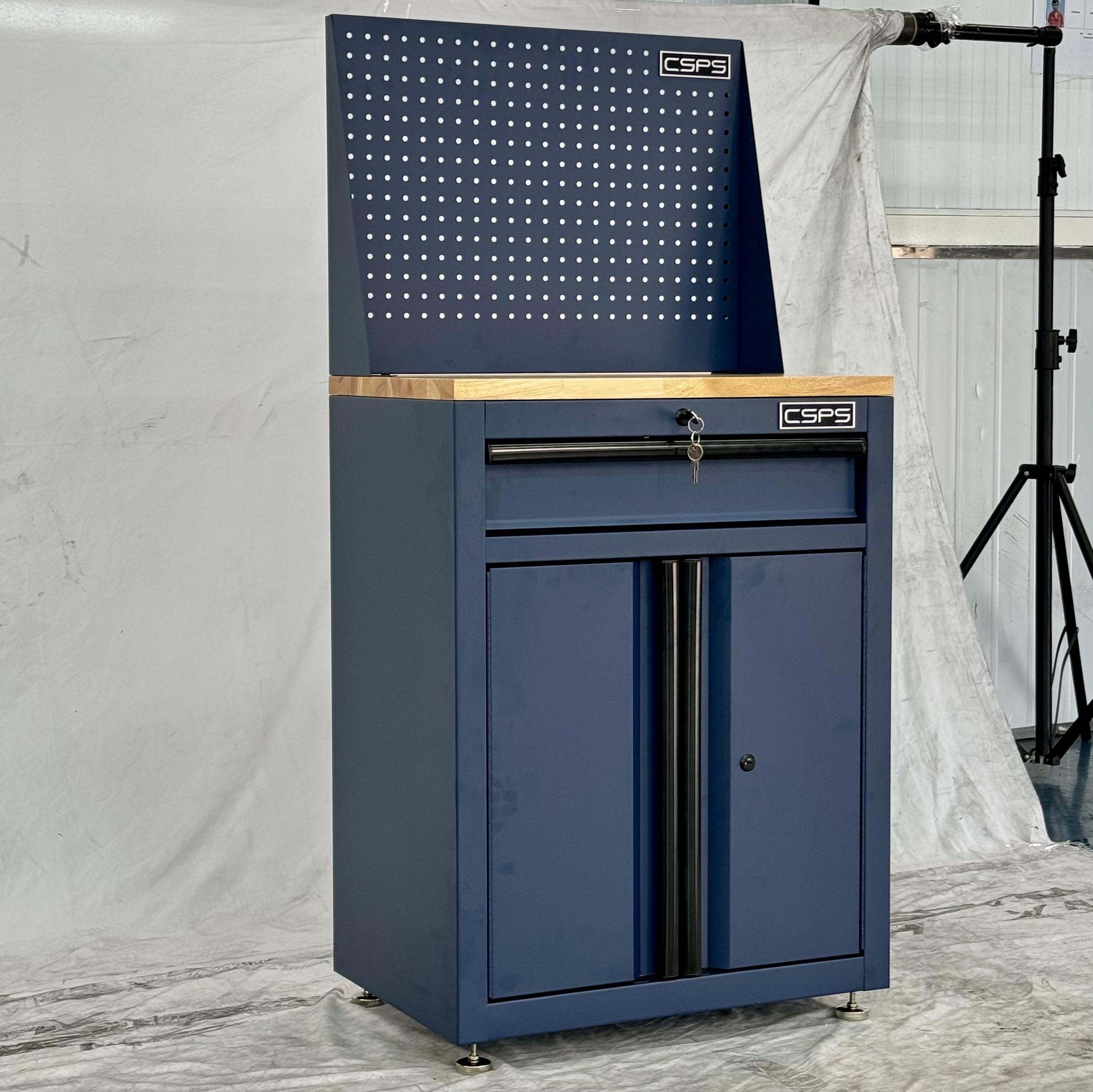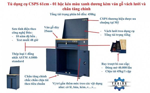 Tủ dụng cụ CSPS 61cm - 01 hộc kéo màu xanh dương kèm ván gỗ vách lưới và chân tăng chỉnh