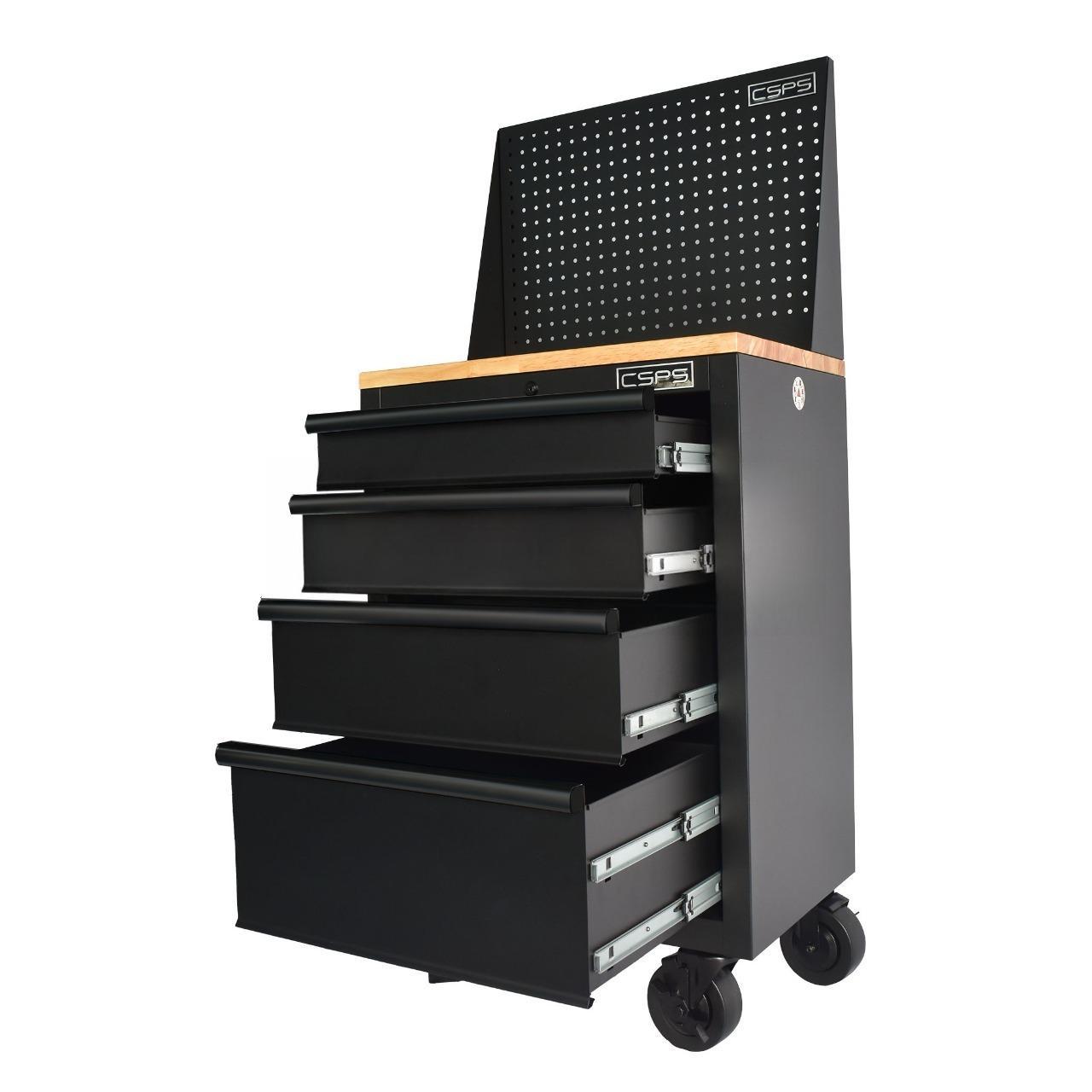 Tủ dụng cụ CSPS 61cm - 04 hộc kéo màu đen mặt ván gỗ kèm vách lưới
