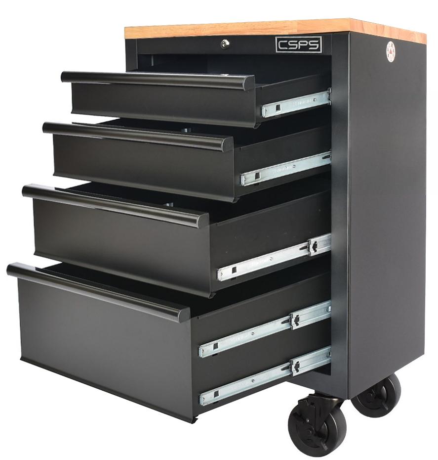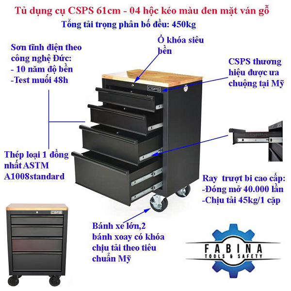 Tủ dụng cụ CSPS 61cm - 04 hộc kéo màu đen mặt ván gỗ