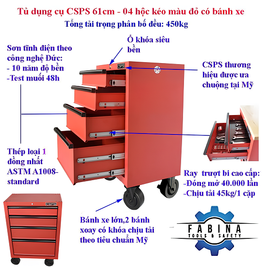 - Từ khóa: Tủ dụng cụ CSPS, Tủ đồ nghề CSPS, Tủ dụng cụ tiêu chuẩn Mỹ, Tủ CSPS