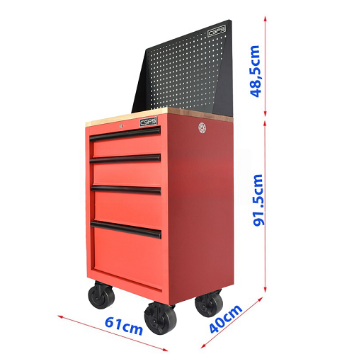 Tủ dụng cụ CSPS 61cm - 04 hộc kéo màu đỏ mặt ván gỗ kèm vách lưới