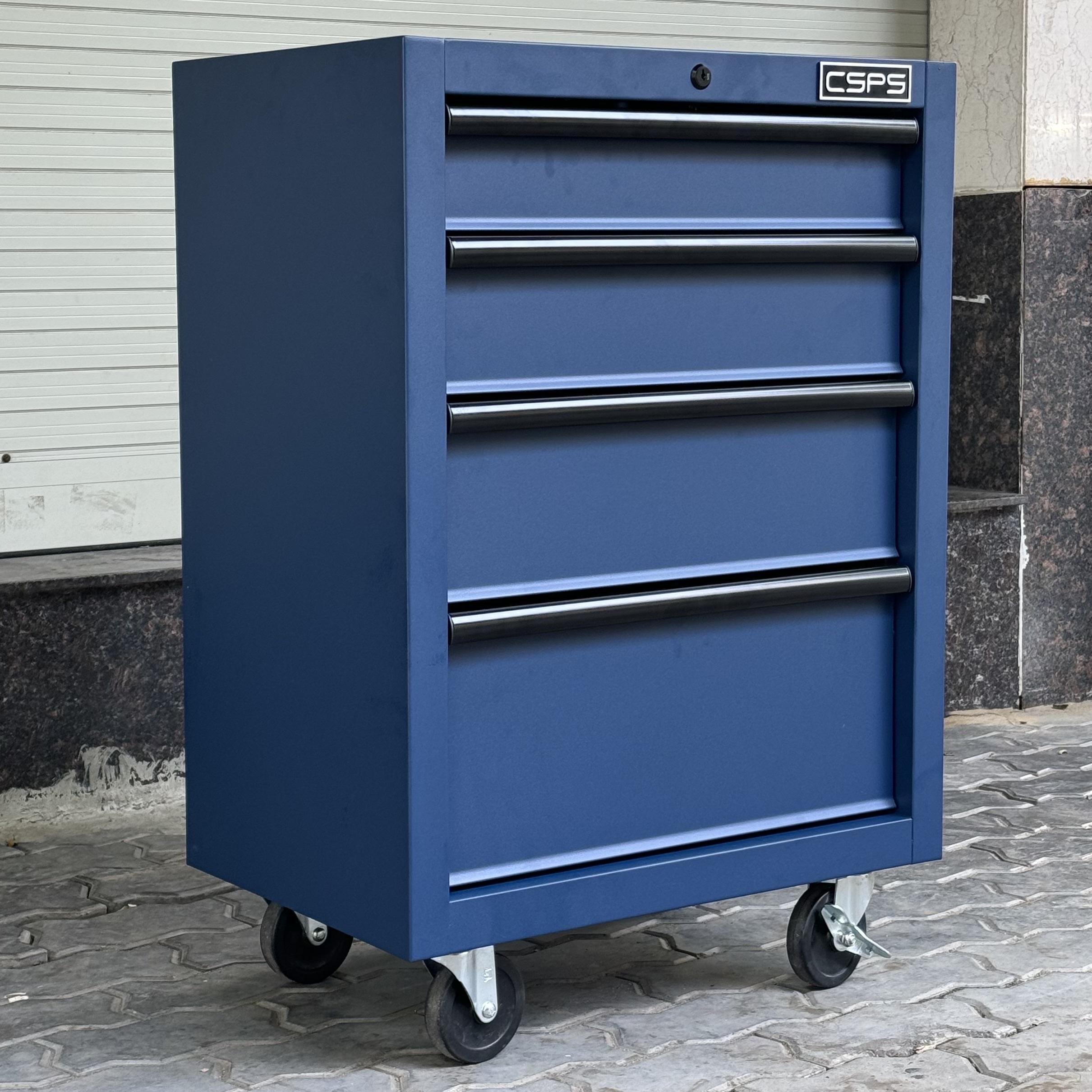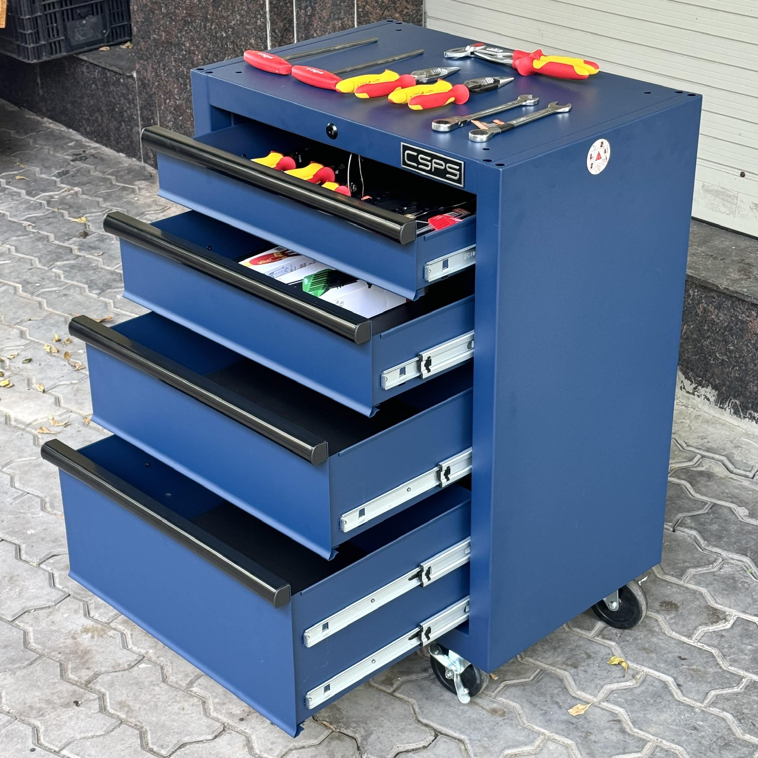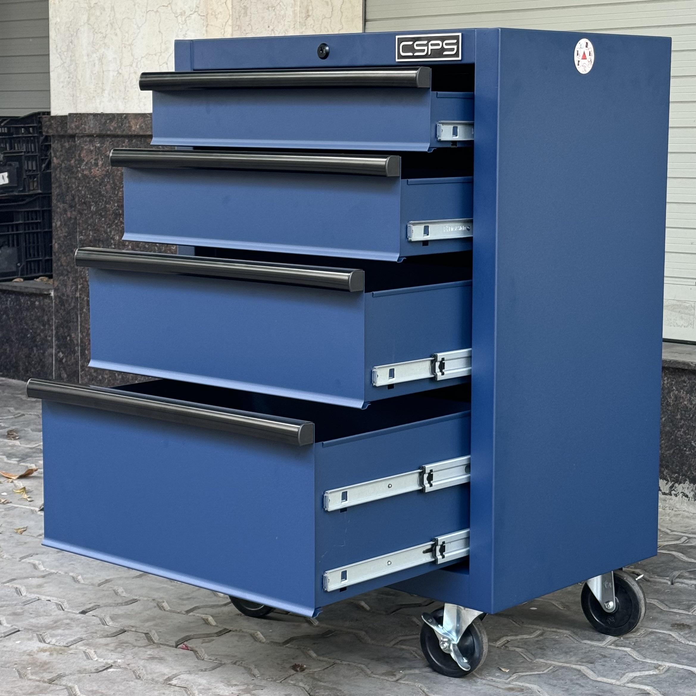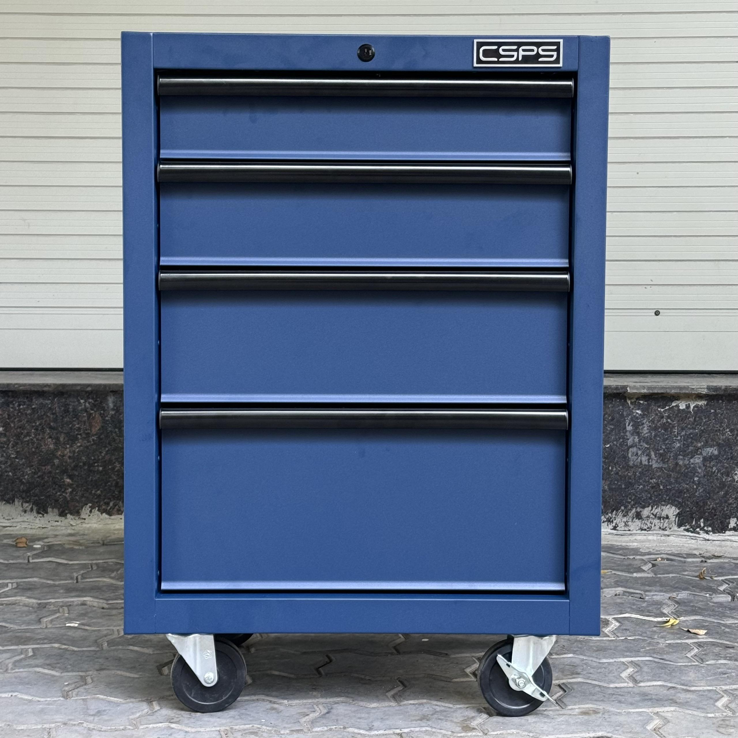 Tủ dụng cụ CSPS 61cm - 04 hộc kéo màu xanh dương kèm bánh xe Fbn 12cm