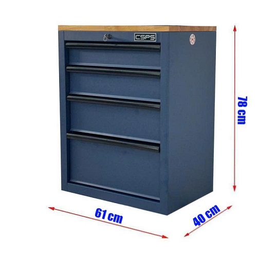 Tủ dụng cụ CSPS 61cm - 04 hộc kéo màu xanh dương kèm mặt ván gỗ