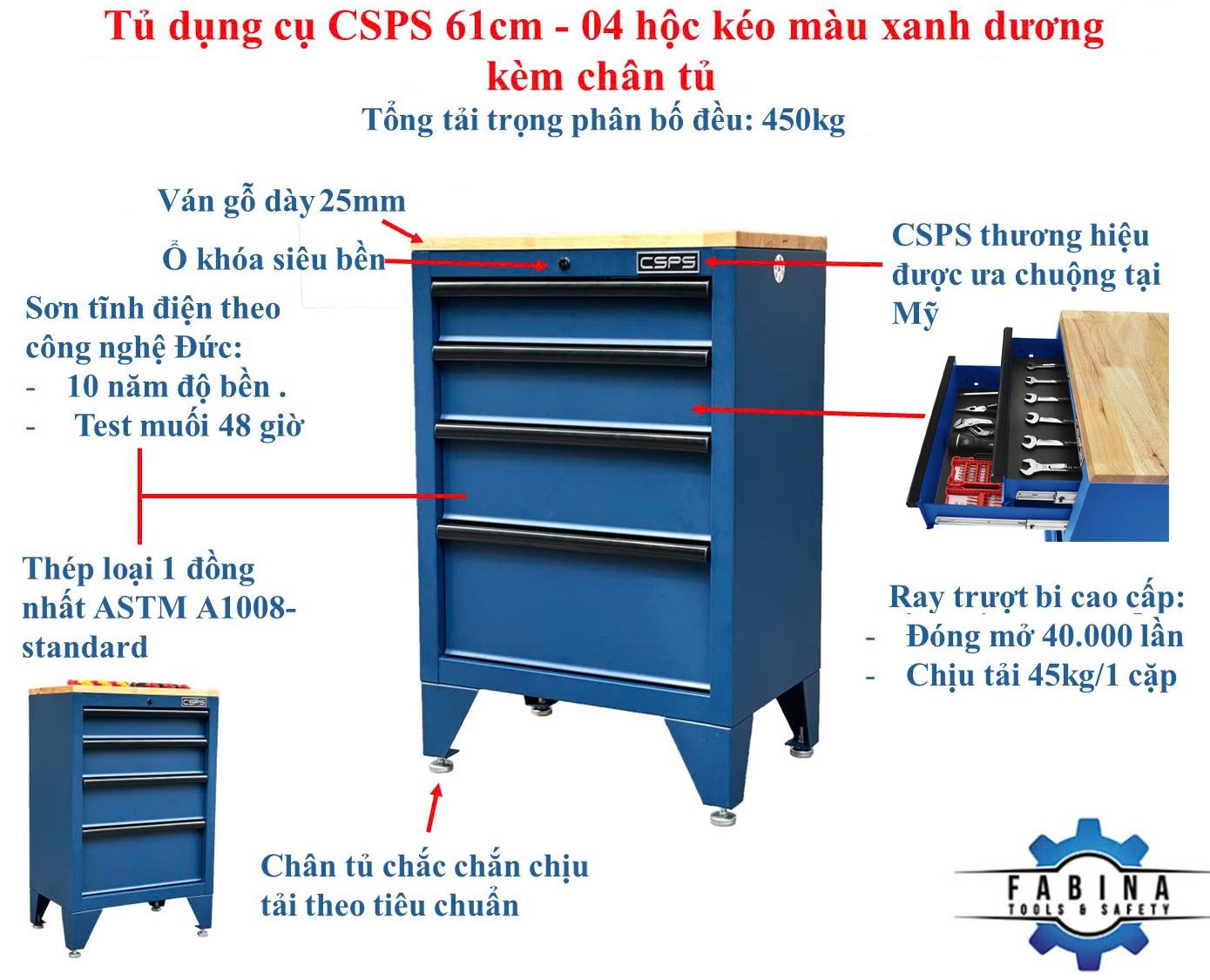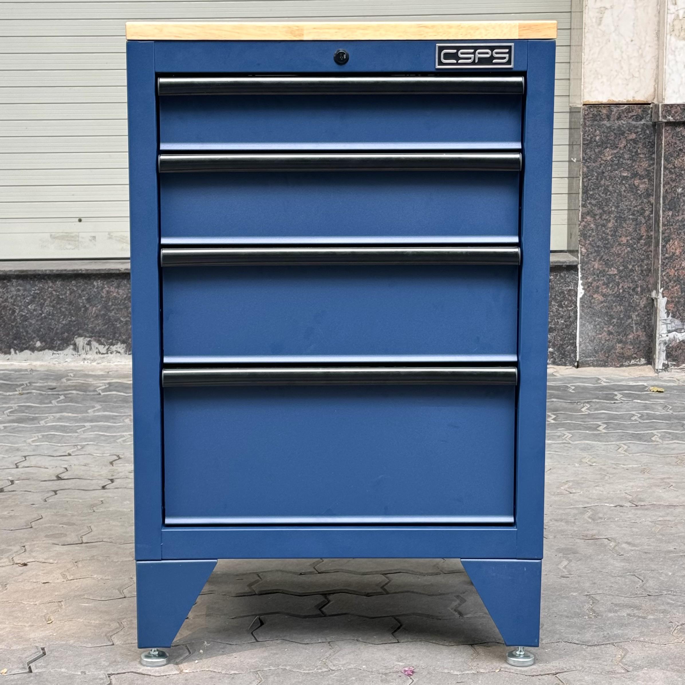 Tủ dụng cụ CSPS 61cm - 04 hộc kéo màu xanh dương kèm ván gỗ và chân tủ