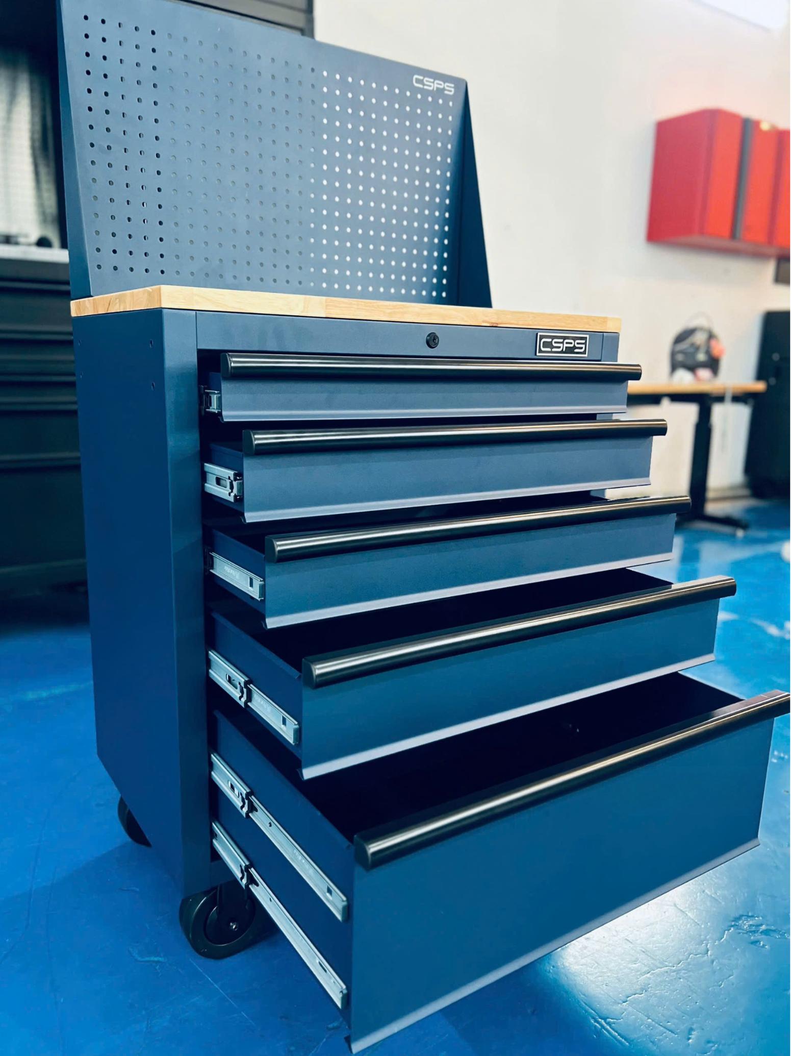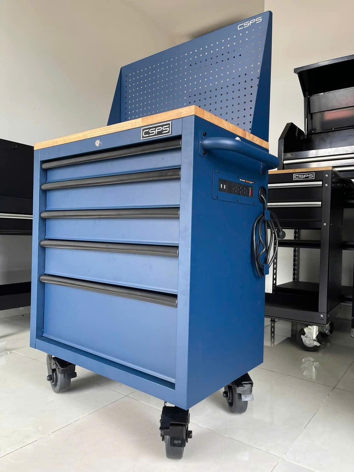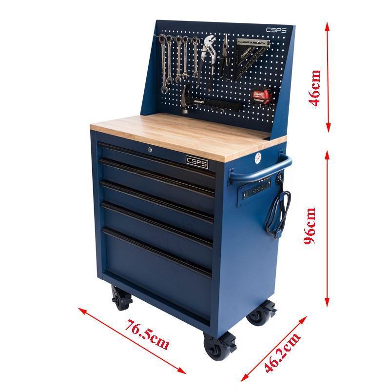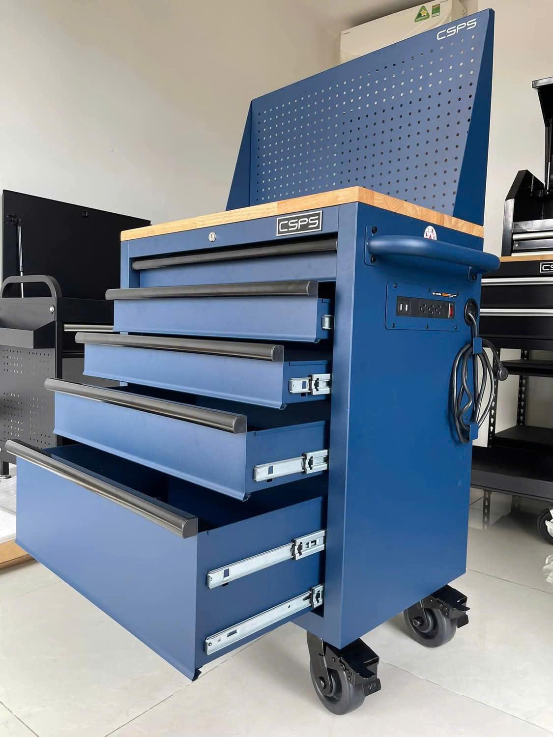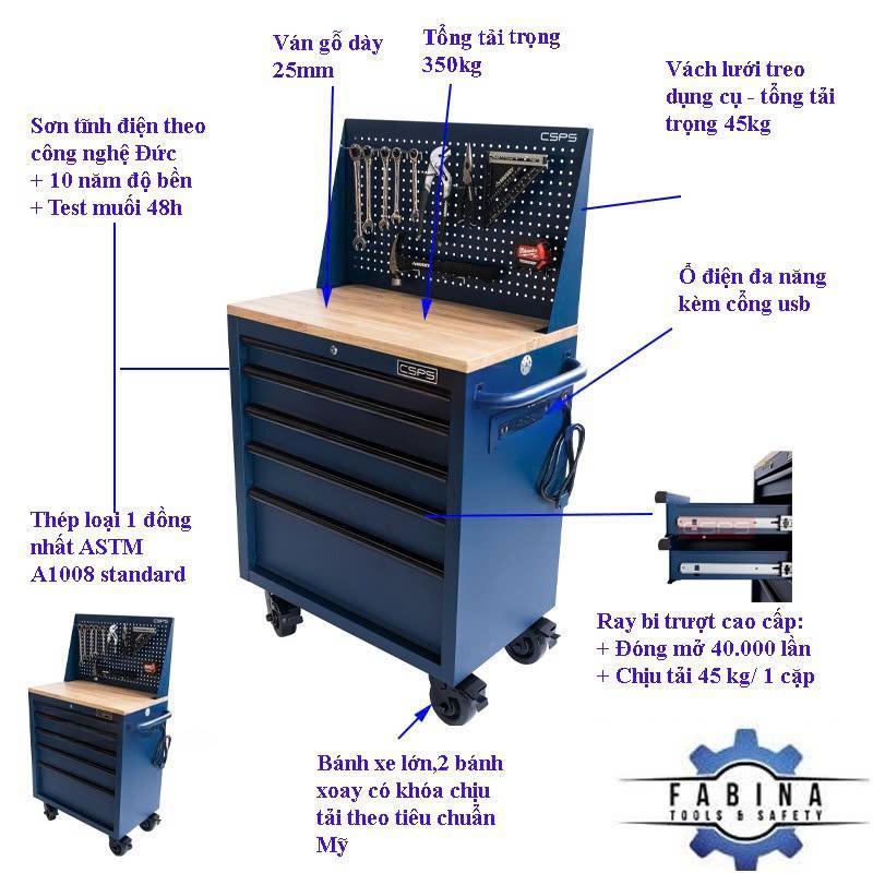 Tủ dụng cụ CSPS 76cm - 05 hộc kéo không nâng hạ màu xanh kèm vách lưới