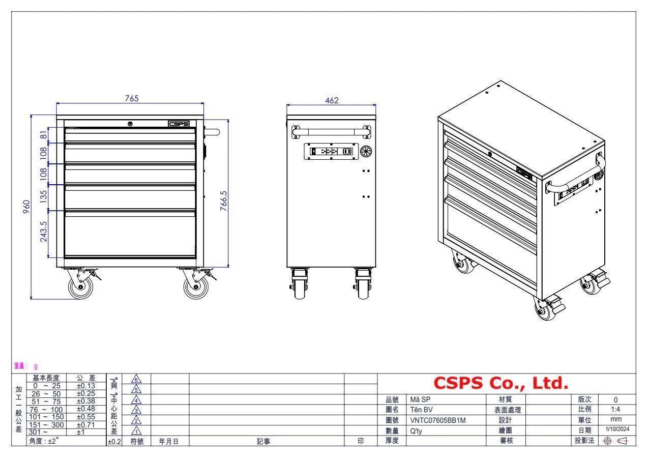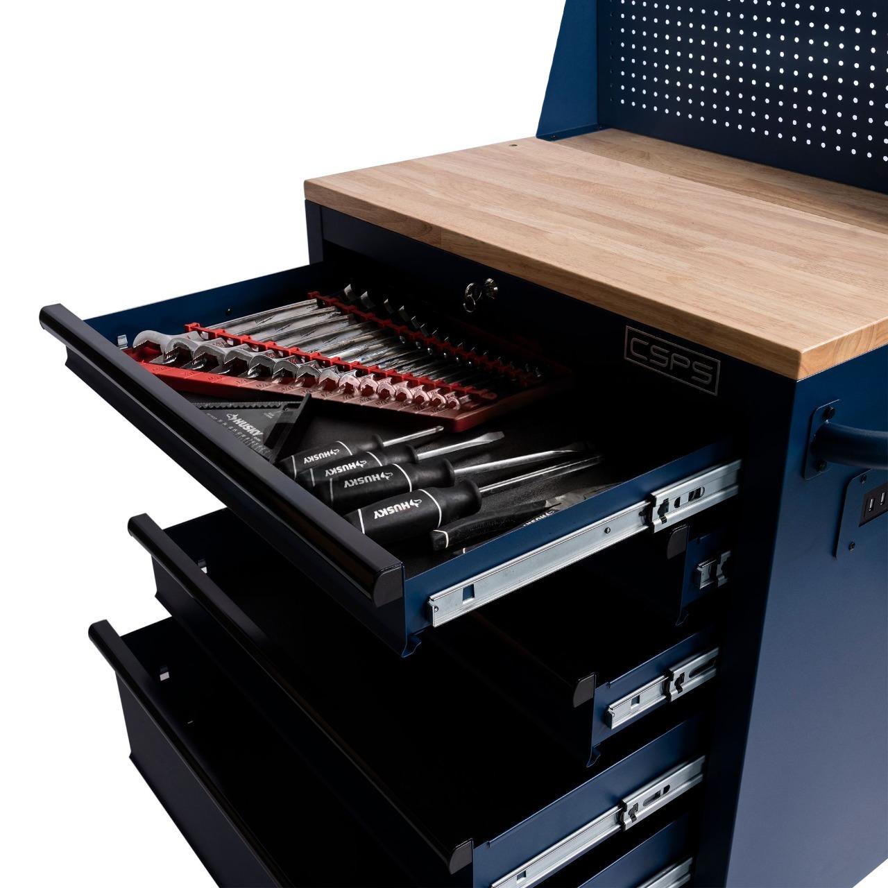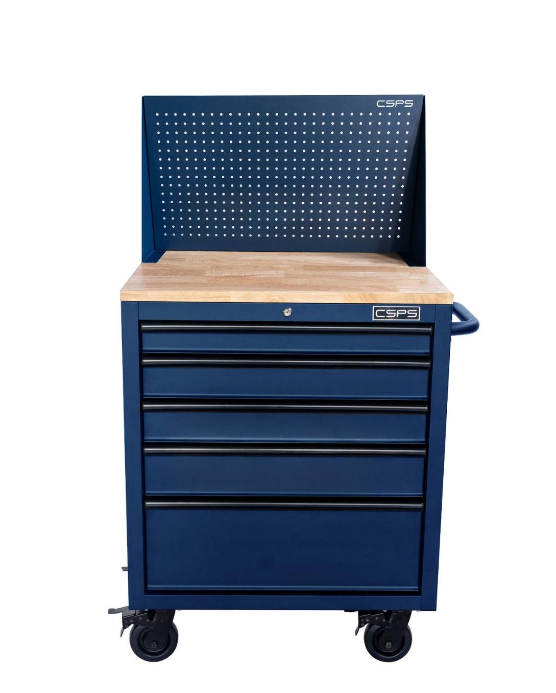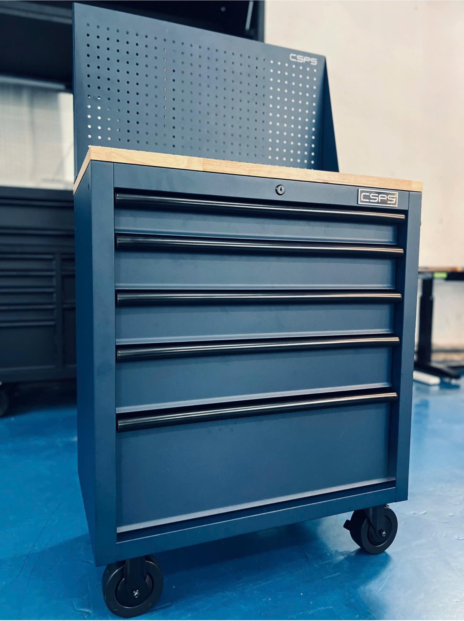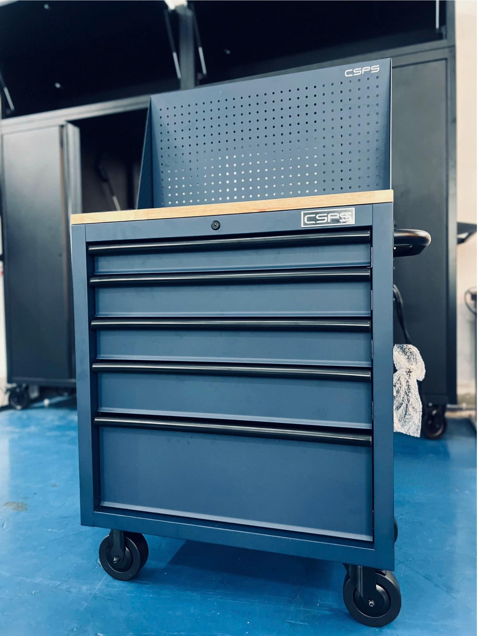 Tủ dụng cụ CSPS 76cm - 05 hộc kéo không nâng hạ màu xanh kèm vách lưới