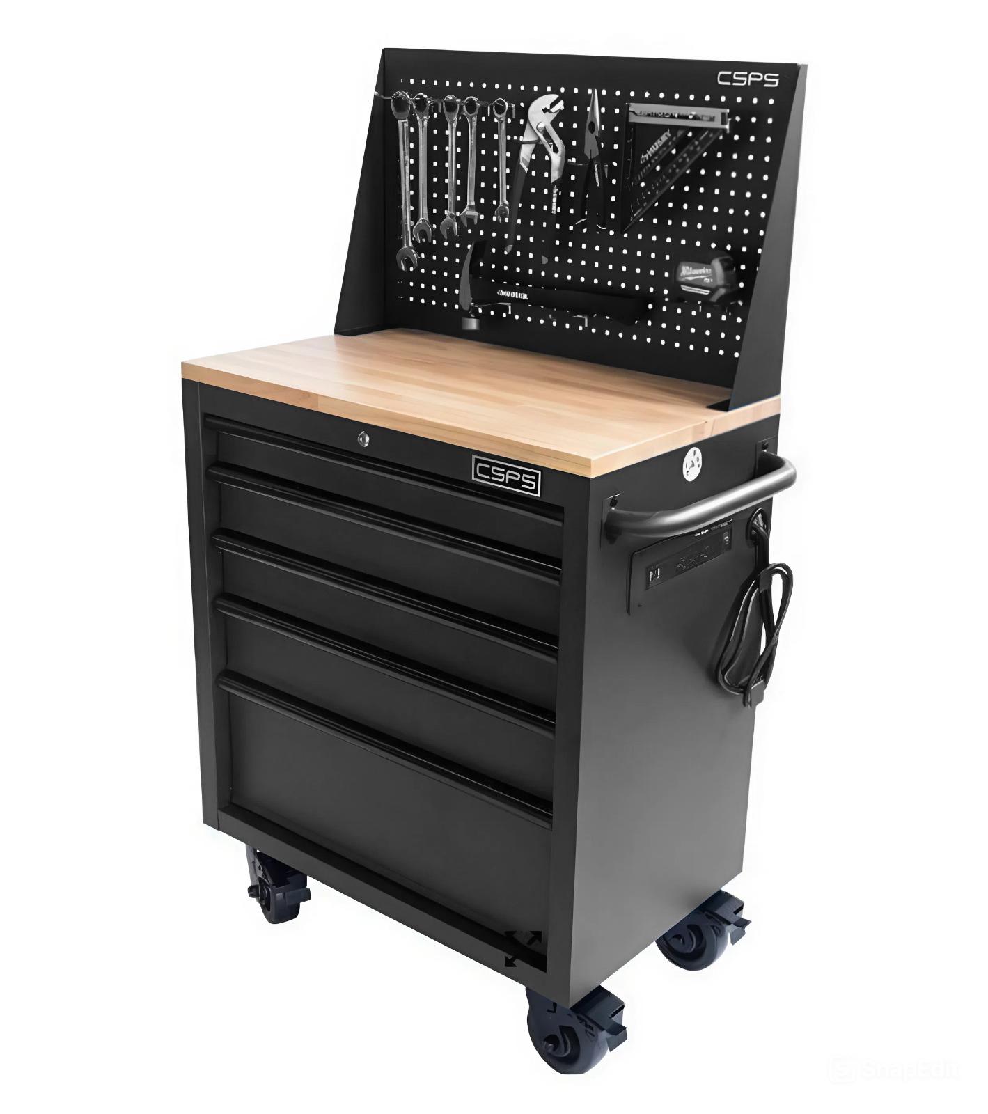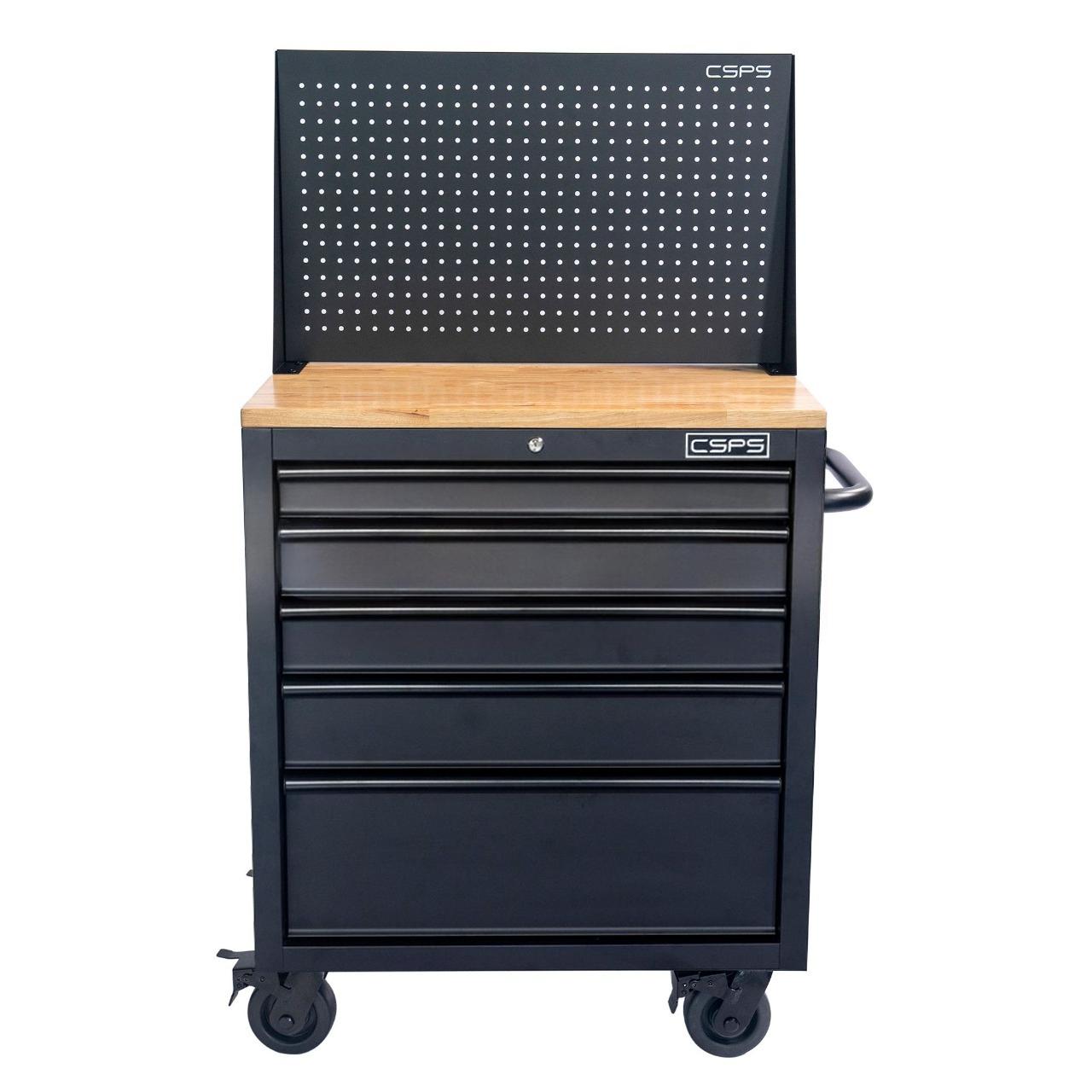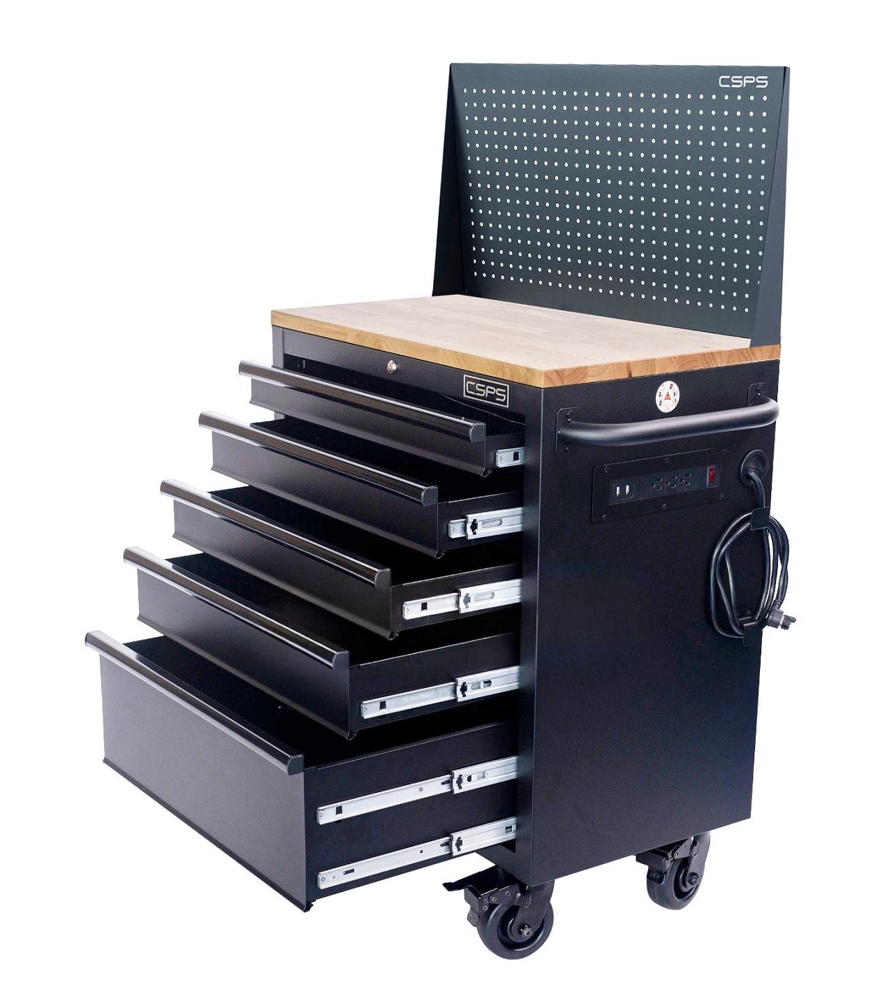 Tủ dụng cụ CSPS 76cm - 05 hộc kéo không nâng hạ màu đen kèm vách lưới