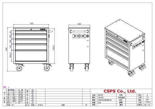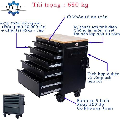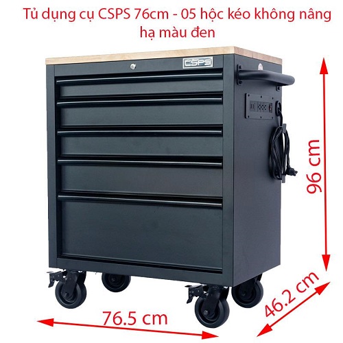 Tủ dụng cụ CSPS 76cm - 05 hộc kéo không nâng hạ màu đen