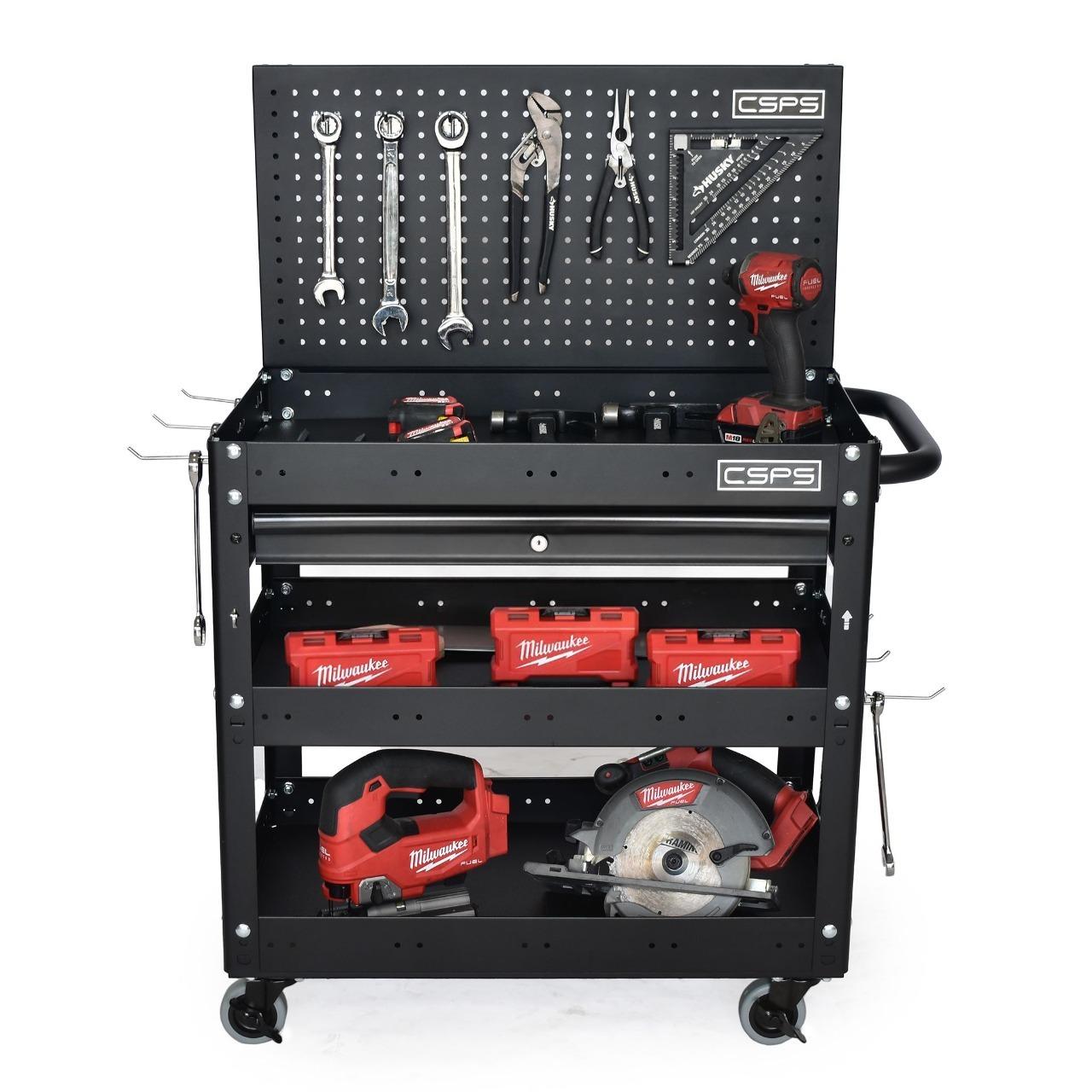 Xe đẩy CSPS 3 ngăn 01 hộc kéo kèm vách lưới - 71cm