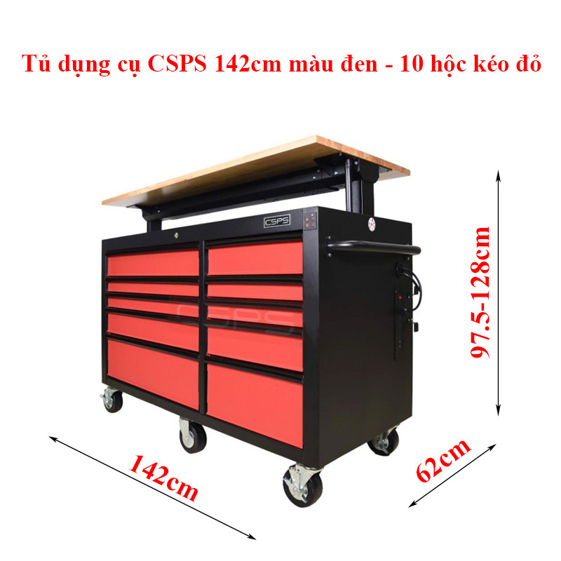 Tủ dụng cụ CSPS 142cm màu đen - 10 hộc kéo đỏ