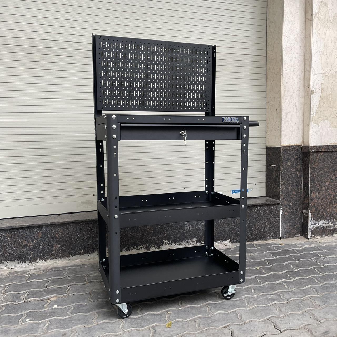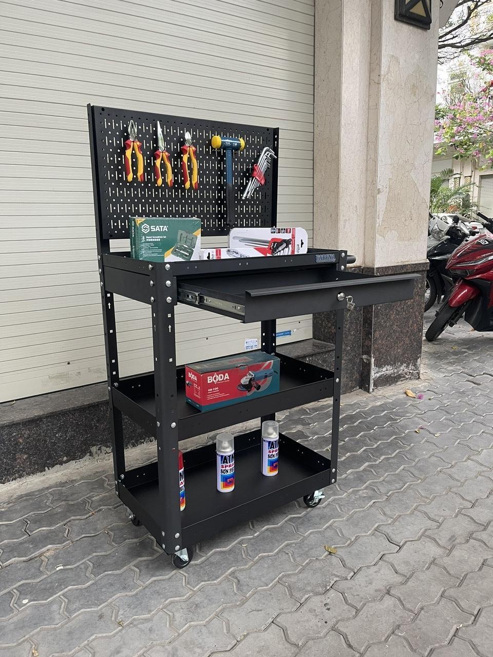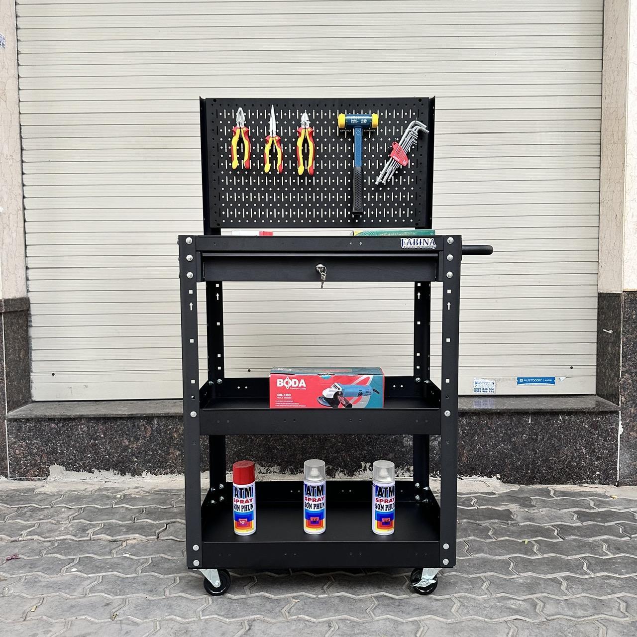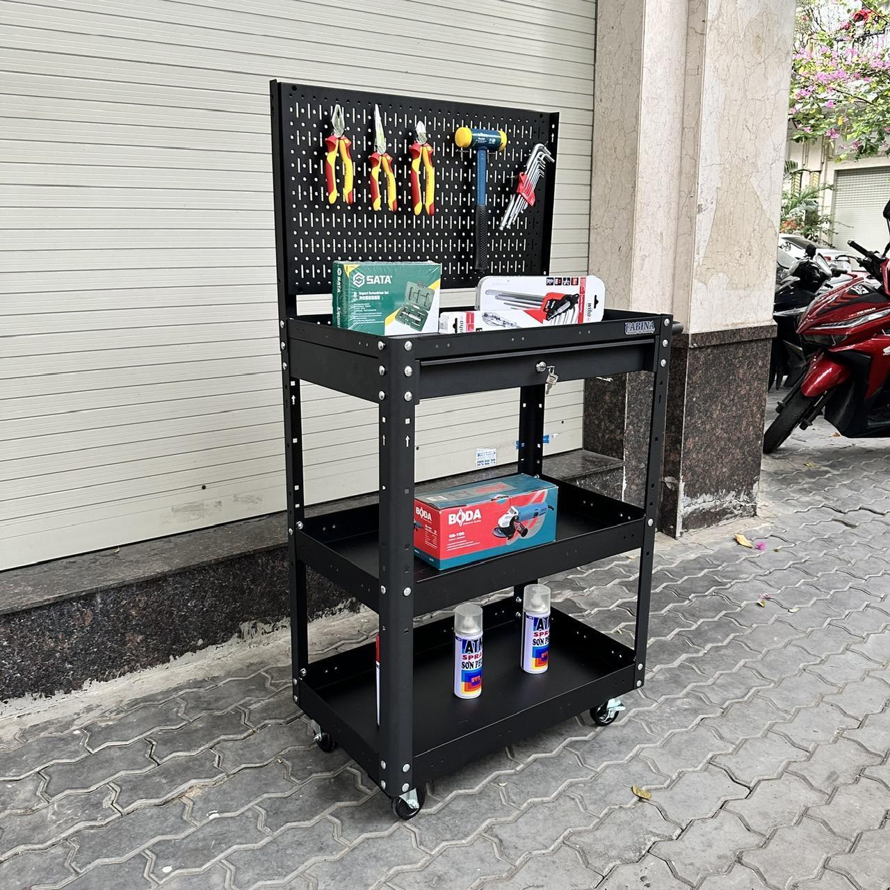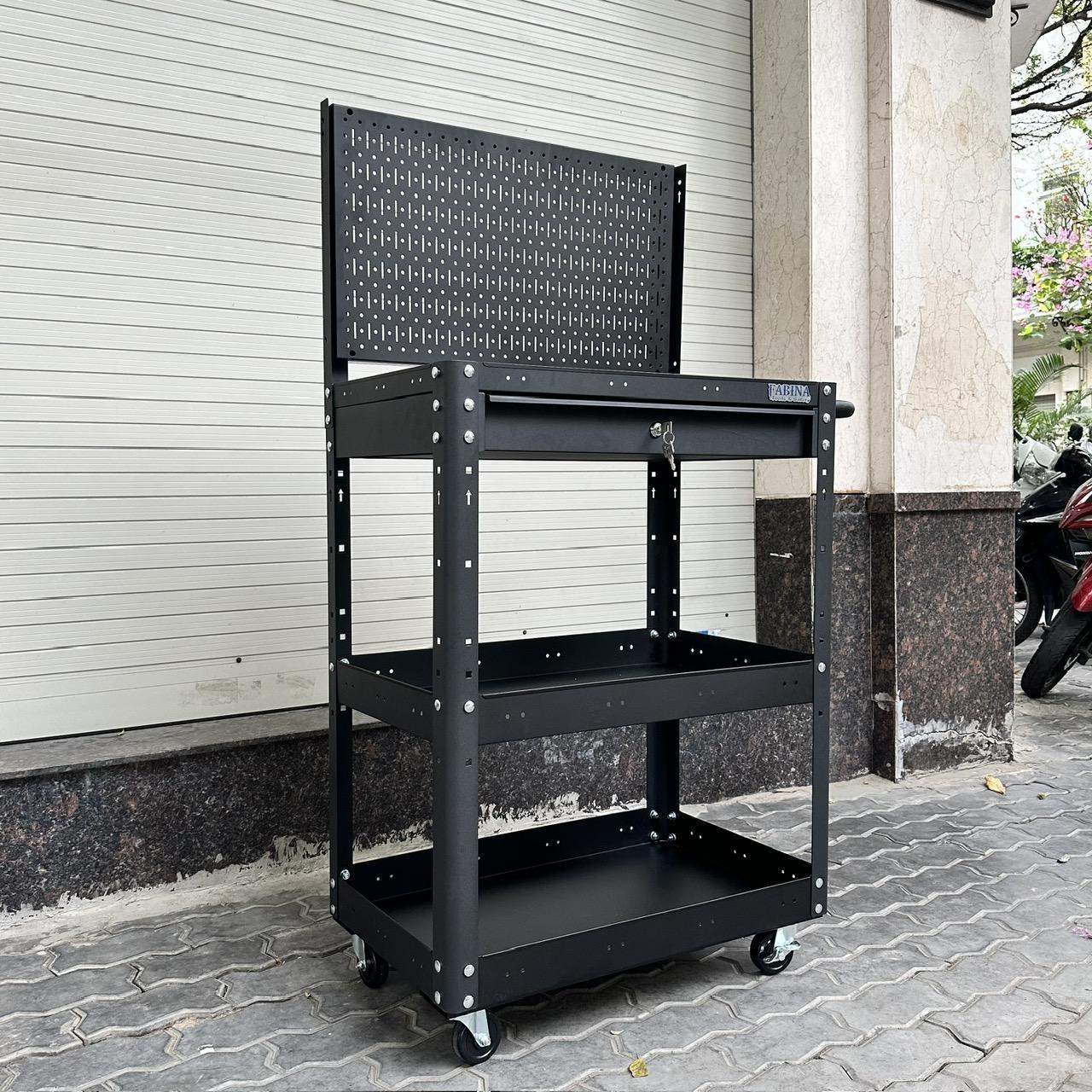 Xe đẩy 3 ngăn 72cm, Tiêu chuẩn Mỹ, sơn tĩnh điện, giúp bạn chứa dụng cụ và di chuyển dễ dàng trong quá trình làm việc, là một trang bị cần thiết cho nhà máy, garage, cửa hàng hay văn phòng làm việc.